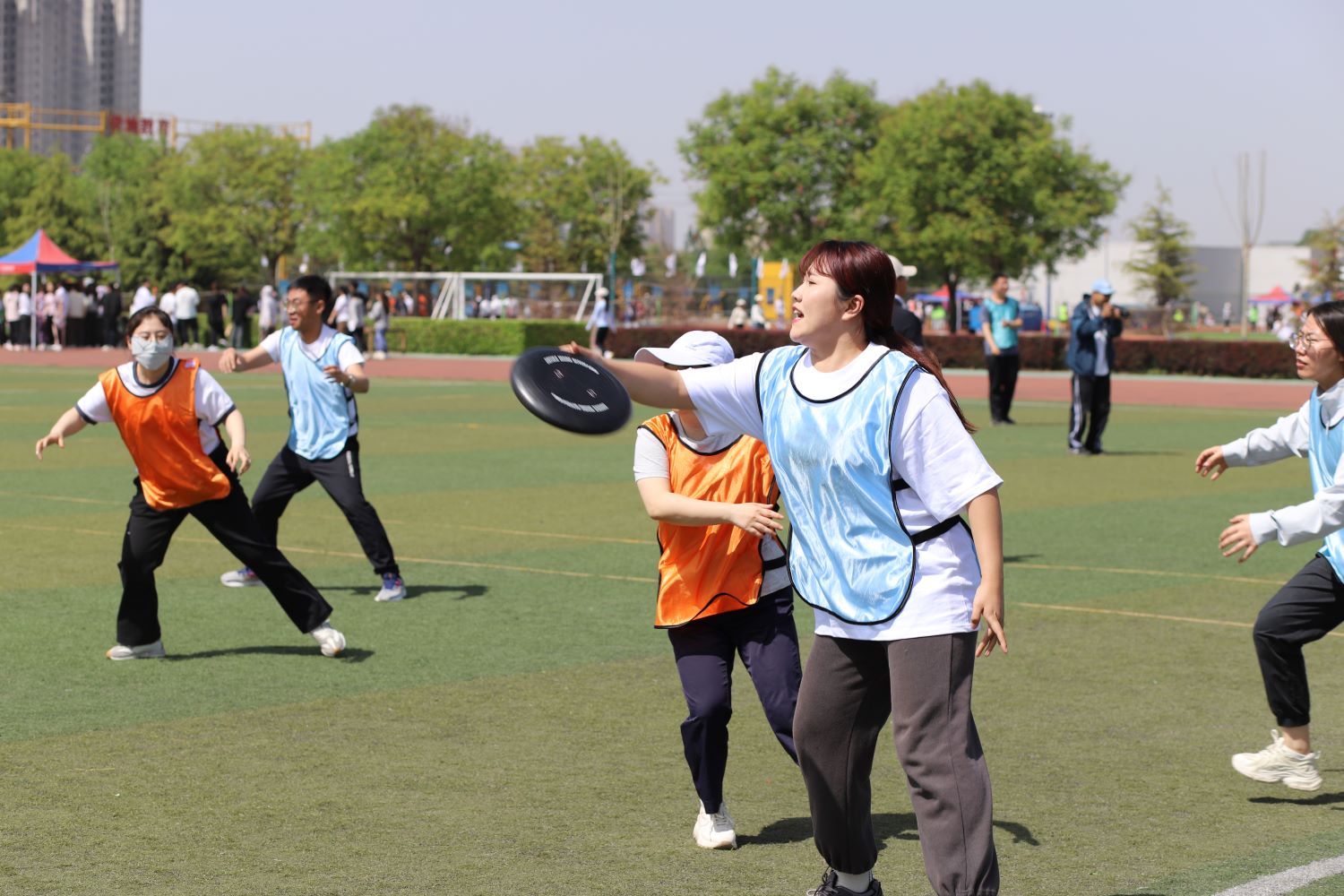 教职工趣味比赛同样精彩纷呈。团队飞盘的传递与接盘,陆地飞舟的步伐一致、稳步向前,荣耀之路的跨越与突破,都是团队协作的完美体现,乘风波浪现场,教工化身“水手”,与浪花搏击,尽显坚韧与勇气。真人CS最强战队,他们密切配合,精准射击,展现出高超的战斗技巧。