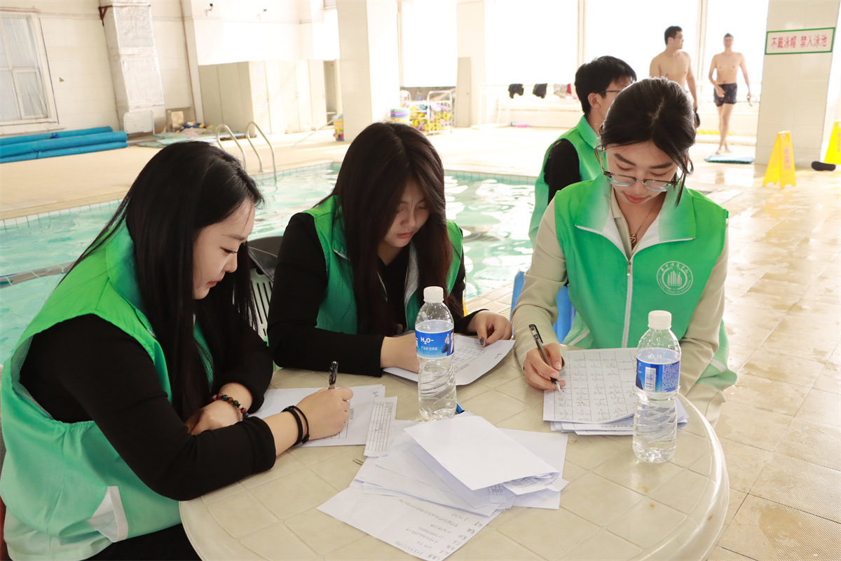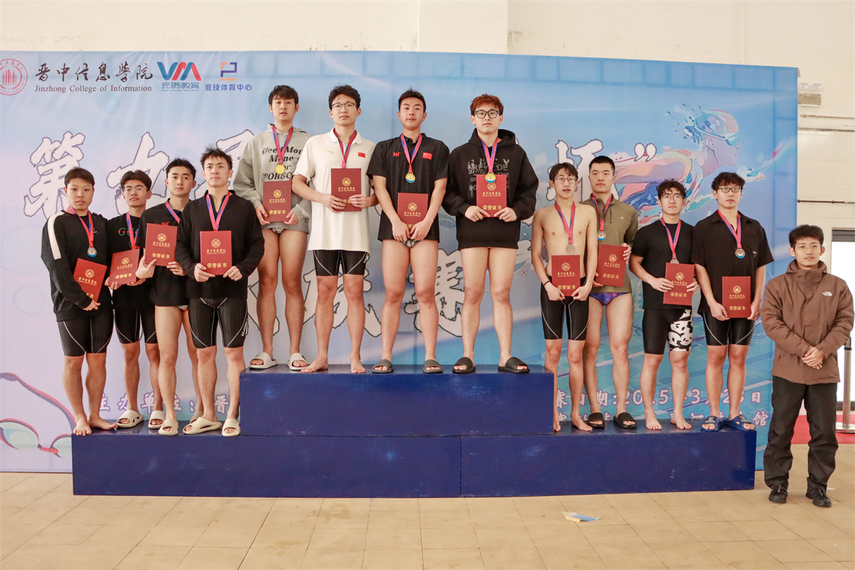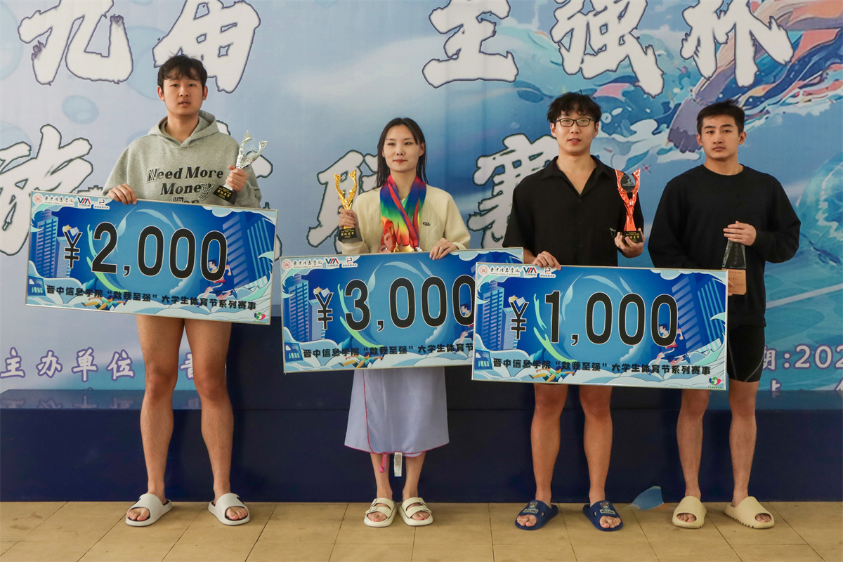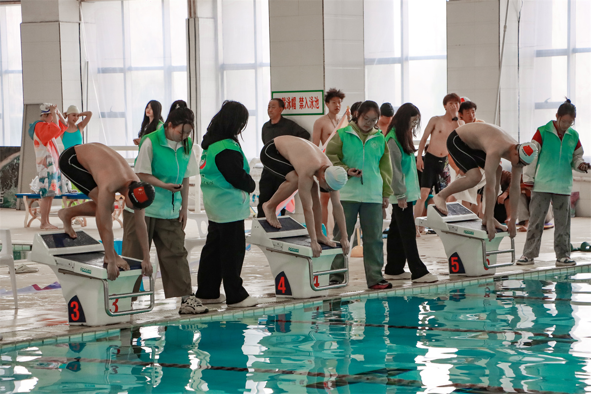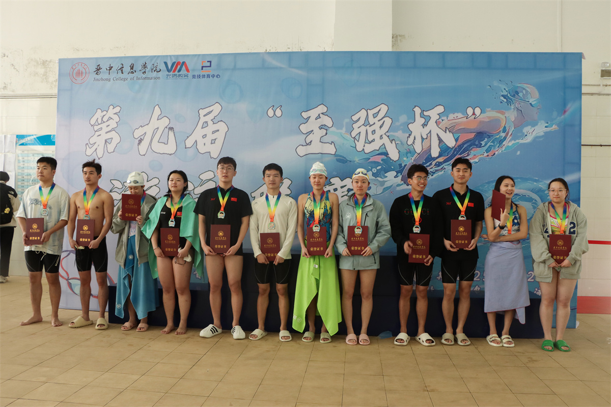 团体赛中,大数据学院、信息工程学院的男子4×50米自由泳团队配合默契,似离弦之箭,以2分04秒91的成绩打破纪录,展现出强大的团队实力。经济与管理学院的男女混合泳接力队也不甘示弱,他们携手共进,以2分46秒84的成绩创造新纪录,为团队赢得荣誉。