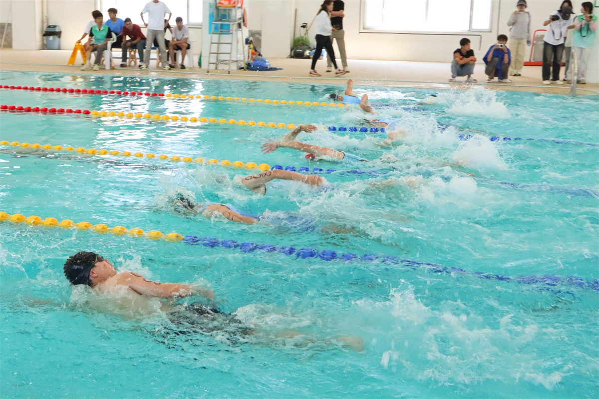 在团体接力组的比赛中,选手们火力全开、奋勇争先。泳池中,他们如蛟龙入水,奋力划动;跑道上,似离弦之箭,全力冲刺。各队选手之间你追我赶,竞争异常激烈,而队友间高度的默契配合,更是成为赛场上一道亮丽的风景线,他们怀揣着坚定信念,向着目标全力进发,为我们呈现了一场精彩绝伦的赛事。最终,淬炼·国际商学院凭借出色发挥,以30'16''的成绩斩获冠军;紧随其后,智能工程学院以30'33''的成绩获得亚军;远景学院以31'39''的成绩拿下季军。