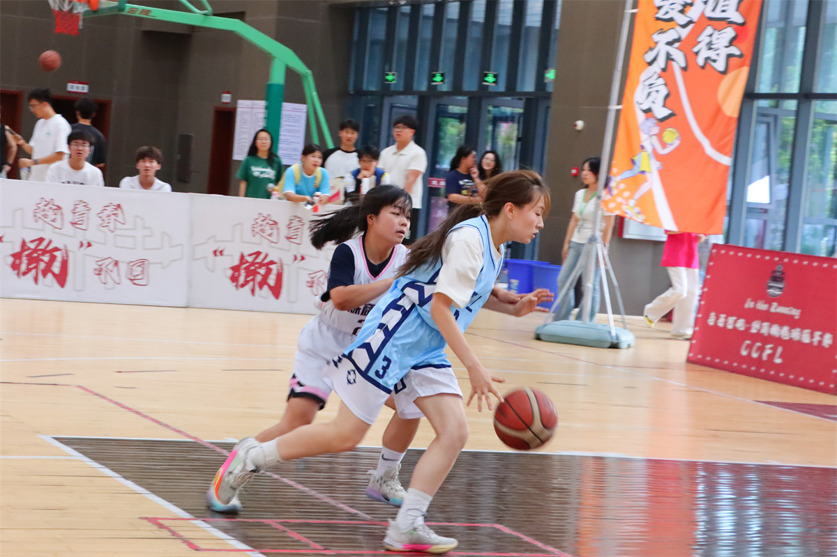 6月6日17:00,第十六届“至强杯”篮球联赛女子甲组决赛在行健馆展开巅峰对决。本次比赛双方分别为淬炼·国际商学院与信息工程学院。比赛开始,淬炼·国际商学院凭借快速攻防转换战术,率先拿下首分,点燃赛场气氛。随后淬炼·国际商学院杜佳瑞延续火力,打出4:0的小高潮。紧接着信息工程学院迅速调整防守策略,张芷韵借助队友挡拆,以一记标准的急停跳投命中两分。第一节比赛信息工程学院以9:7暂时领先。第二节开始,双方继续激烈拼抢,信息工程学院王昕冉和姬育玲配合默契,成功得分。信息工程学院依靠稳定的篮板保护与高效的挡拆执行,保持着领先优势。