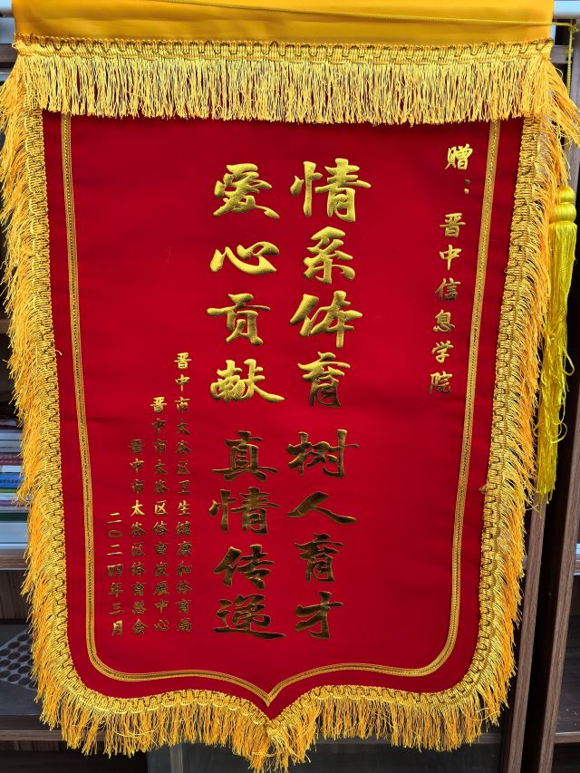 4月1日,晋中市太谷区体育发展中心主任薛谨言亲自带队来到我校,送上锦旗与感谢信,再次表达了对我校学生裁判表现出的专业素养和敬业精神的认可与赞扬,感谢我校对体育发展中心各项工作的大力支持和帮助,希望能与我校建立长期的合作伙伴关系,共同策划更多精彩的体育赛事,为学生们创造更广阔的发展空间。