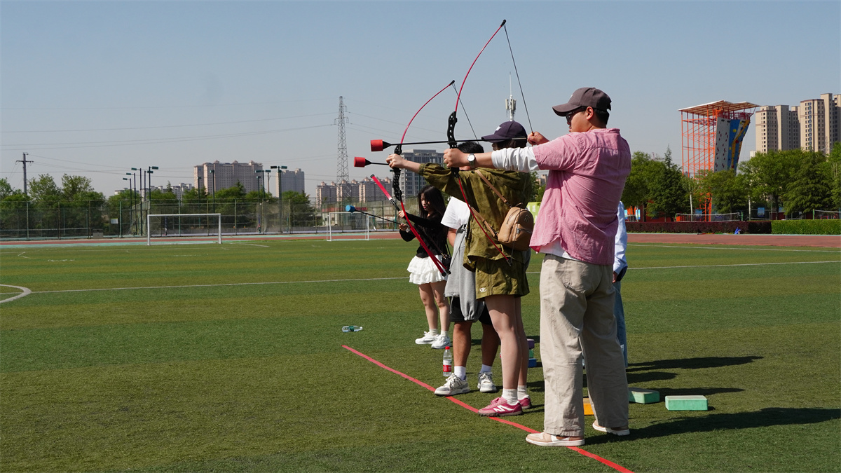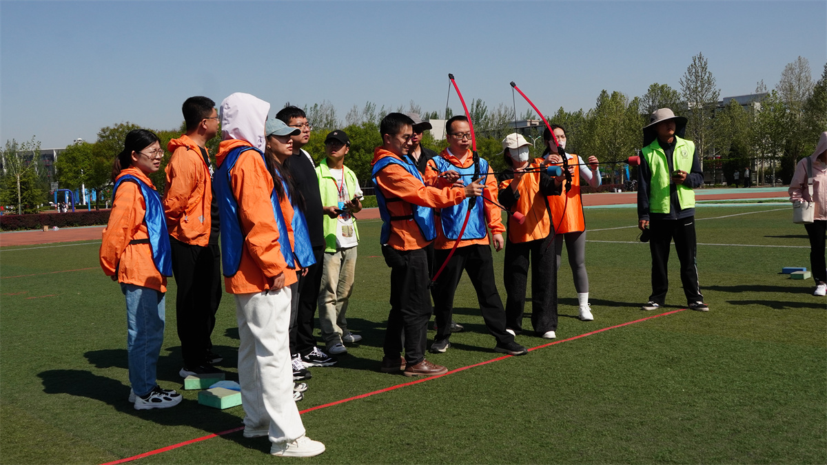 荣耀之路团队挑战则展现了教职工们的多才多艺:艺术组老师在“古艺投射”中一展身手;智能组“踩石过河”中选择了最短的直线线路; 射箭时,老师们一手向后拉着箭,一手紧握着弓,神色紧张,使出全身的劲儿将箭射出。而箭似乎有自己的想法,到处飞就是不往筐里进。而“蒙眼敲锣”环节产生的各种“迷之走位”,将成为今后多年的笑谈素材!