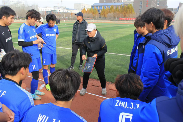 我校球员全员深度防守,后卫线如铜墙铁壁般死死守住球门,中场球员不惜体力地奔跑拦截,门将更是高接低挡,多次化解必进球危机。