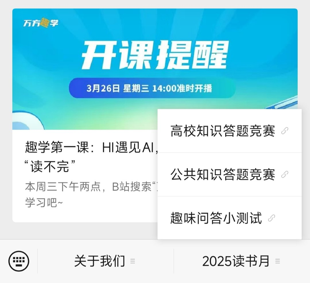 现场扫描以下二维码关注“万方数据知识服务平台”公众号,点击“2025读书月”菜单栏,选择“高校知识答题竞赛”,即可进入答题系统。进入答题系统后,填写姓名、电话、所在学校全称等个人信息后在相应的时间段内即可开始答题。(注意:个人信息需确保准备无误,否则无法导出,视为无效成绩)