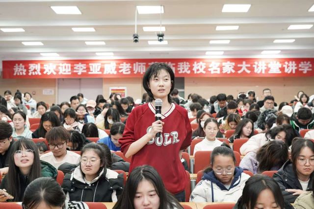 对于这次难得的机会,广大师生纷纷举手发言指出自己心中的困惑。李亚威导演秉承“创作的观点就是真善美、与拍摄对象产生深厚的感情、真诚是连接拍摄者和艺术家的血脉”的理念分别给出了回答。为进一步给予同学们启发与灵感,她特意从我校特色云端剧本杀学院与共享厨房进行出发,建议同学们从平凡中发现不平凡,去及时捕捉生活的影像,对生活进行发现与挖掘,精心筛选金屑。李亚威导演特意强调“文学文艺包括一切作品都是从尘土中来。如果没有经过尘土挖掘、生根发芽,我们没可能有好的作品。”