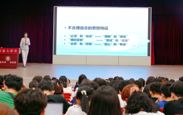 在充满张力的讲座中,黄菡教授以具身化叙事策略激活听众认知图式,通过临床案例解构、互动情境模拟等多元方法,将抽象心理理论转化为可操作的成长方案,现场持续迸发思想碰撞的星火。黄菡教授以美国心理学家爱丽丝的“ABC理论”为切入点,深入剖析“必须成功”“应该被爱”等绝对化思维定式。她指出,这类不合理信念如同无形牢笼,将生活简化为非黑即白的二元对立。同时,援引荣格“人生无完美解,唯有超越”的哲学观点,引导在场听众打破思维桎梏,探索生命的多元可能。面对快节奏时代下当代青年的压力困境,黄菡教授通过25道自测题,带领全场进行“A型性格”的集体反思。她结合临床研究数据指出,85%的心血管疾病与A型性格密切相关,更值得警惕的是,这种性格特质会逐步消解幸福感,异化人们对生命的感知。通过现实生活中的鲜活案例,她深刻揭示996工作制、数字化生存如何将人异化为追求效率的“算法生物”。在压力应对策略的探讨中,黄菡教授以“狒狒博弈”模拟实验为依托,清晰区分问题导向与情绪导向两种生存模式。她强调,前者以理性思维直面问题,果敢行动;后者则易引发负面情绪的连锁反应。黄菡教授呼吁:真正的自由,在于主动选择应对压力的方式,而非一味逃避;健康的压力管理,关键在于科学规划奋斗与休息的平衡,让身心在张弛有度中持续成长。
