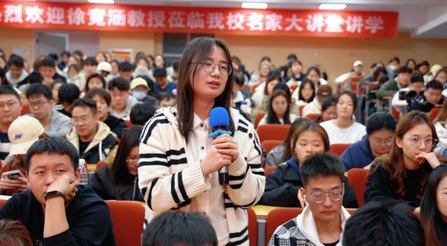 讲座渐近尾声,现场的气氛却依旧热烈非凡,在互动提问环节,思辨热潮持续涌动,青年学子竞相抛出深度追问。他特别建议毕业生采用复合视角,突破学科阈限的选题策略,聚焦数字人文前沿的界面革命。现场师生满怀热忱地涌上台前,纷纷与徐竟涵教授合影留念,大家都希望用镜头定格这一收获满满的美好时刻,为这场知识盛宴留下珍贵的回忆。