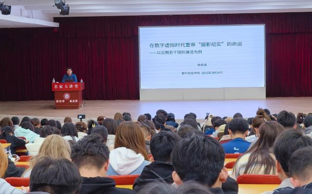 下午14:30,徐竟涵教授于图书馆小礼堂为同学们带来了一场以《在数字虚拟时代重新审视“摄影纪实”的命运--以若干最新国际展览为例》为主题的精彩讲座。讲座聚焦数字技术对纪实摄影本体的解构与重构,旨在于虚实共生的媒介环境中探求人文精神的复归路径,警惕技术霸权对人类主体性的侵蚀。谈起讲座缘起,徐竟涵教授结合自己所参加的展览经验缓缓道来,依托其跨学科研究视野及国际前沿策展经验,深度阐释影像媒介研究的当代转向。从纽约国际摄影中心"新档案运动"对文献热的再诠释,到洛杉矶MoMA"普通人"特展对照相写实主义的数字解构,通过对近年国际双年展典型案例的学理溯源与脉络梳理,揭示出这些艺术现象实为数字文明转型期的文化症候,折射出当代艺术对数字文明浪潮的敏锐感知与批判性思考,并借文理科并串联的发散式与集约式的学习思维,为同学们构建起了哲学与摄影纪实的底层逻辑。