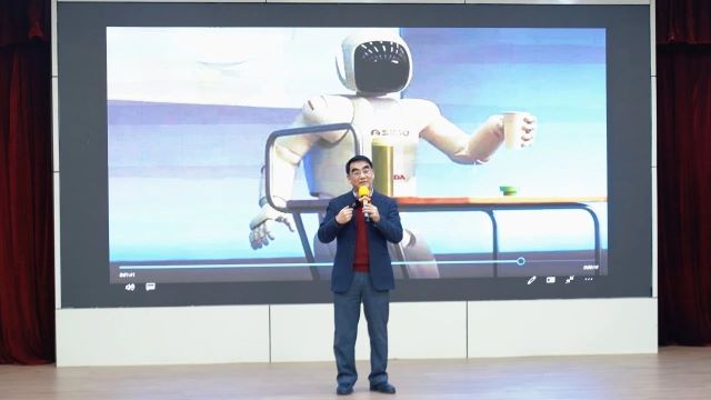 机驱变革,智启新程。要论机器人与看世界,那这之间必不可少的桥梁就是视觉系统。如果谈及人类和动物的视觉系统,那一定是眼睛和大脑;而机器人视面对这场精彩纷呈的讲座,图书馆小礼堂内掌声雷动,久久不息。众多同学踊跃向原魁教授请教,提出了各自在机器人领域面临的困惑或希望深入探讨的问题。原魁教授耐心倾听,逐一解答,并提供了切实可行的建议,令在场师生受益匪浅。讲座结束后,大家纷纷登台与原魁教授合影留念,定格这一珍贵时刻。本次讲座的成功举办,不仅为我校创新创业学院注入了新的活力,更拓宽了同学们对机器人领域的认知视野,在大家心中播下了创新与探索的种子,激励着他们在未来的学习和研究中不断突破自我,勇攀科技高峰。觉系统就是硬件和软件。面对机器人视觉系统,原魁教授指出其任务是对视觉信息进行处理,实现目标检测和目标识别。对此需要解决两个基本问题,“看得清楚”和“看得明白”。他从硬件入手,向同学们展示了来自传感器以及鱼眼镜头的特殊视觉感受,揭示了不同用途的视觉系统,其成像器件的性能大不相同的成像器件的秘密。在谈及软件方面,原魁教授从图像处理法以及模式识别算法两方面为同学们绘制了一幅算法与软件的神奇画卷,指出进行视觉测量是实现机器人自动编程的基础之一。