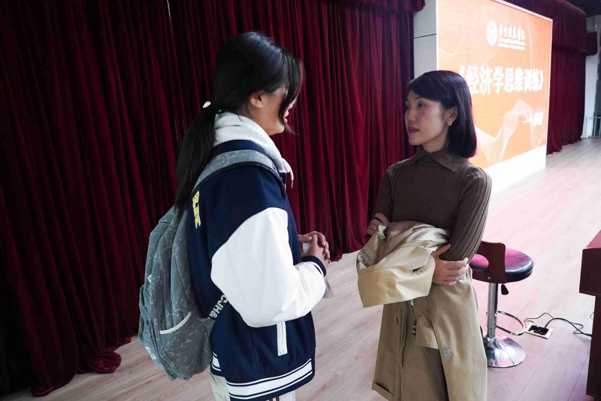 10月25日晚19:00,季曦教授在图书馆小礼堂为同学们带来了题为《经济学思维训练》的精彩讲座。此次讲座不仅吸引了众多学生参加,还得到了学校领导以及通识教育部门教师的高度关注与积极参与。时代的变革也是思想的变革,季曦教授以时代为出发点,指出经济学服务于时代,当时代产生新的矛盾,经济学也会依据矛盾产生新的分支。她建构起清晰的时间脉络,从人口、技术更替、生态环境变化三个经济学关注的方面展开论述,给予直观的数据,让同学们对经济学演变的过程拥有更加清晰的逻辑链。从全球宏观经济形势谈到国家经济发展策略与形式,季曦教授将理论融入实际案例中,通过科学语言通俗化的方式,让同学们深刻品味到经济学是一门具有人文关怀的学科,它以增强人类福祉为宗旨目标,以问题为导向,通过严谨的研究方法成为社会科学皇冠上的一颗明珠。讲座中,季曦教授强调在没有极限思维的约束下,我们可能只考虑增长;但在面临约束下,我们应该考虑的是优化。同时提出我们要以变化的眼光看待事物,她借经济学集大成者米勒“增长停滞不代表发展停滞”的话语对同学们提出不能以静态眼光看世界以及保持敏锐性的实用性建议,同学们经久不息的掌声是对她巧妙讲解的高度赞同。