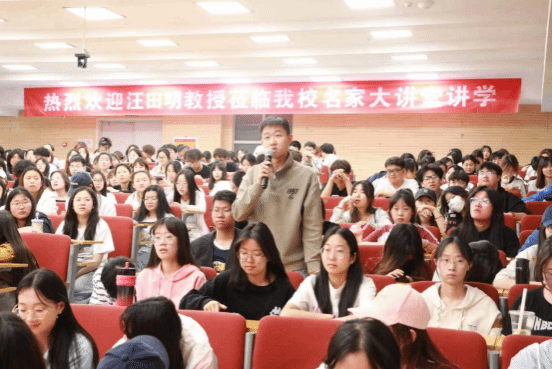 艺术与文化相交织,都是古人对于天地之美敏锐的捕捉和深情描绘。宋迪、苏东坡等历代文人所建立起来的一个相对稳定的文化体系,形成了一个独特的文化记忆。“潇湘八景”是古老的潇湘文化的载体,多元地承载了人文地感性体验和理性思考。汪田明教授以岳阳楼作为湖南历史文化的重要象征,承载了无数的历史故事。同时,在讲座中汪田明教授也从历史渊源、文化内涵等多个角度介绍了人文与艺术的辉映,在场的同学们无不感受到潇湘八景地魅力,而汪田明教授幽默又富有意趣的演讲也激发了在场同学们的热情,活动现场互动频繁。