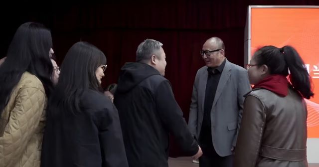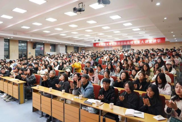 讲座圆满结束后,现场师生满怀热情地涌上台前,与朱青生教授合影留念,定格这一珍贵时刻。艺术与传媒学院院长盛卓立老师携同10余名青年教师上台与朱青生教授展开深入的互动交流。他们围绕讲座内容、学术见解及未来工作方向等话题展开了热烈的讨论。期间,大家还积极地互换了联系方式,期待能在今后的学术研究与教学工作中继续保持密切沟通与交流,共同探讨学术新知,携手促进艺术教育事业的发展与繁荣。