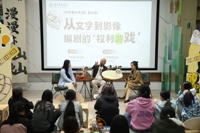 5月9日19:00,由名师课堂、三达书院、智能工程学院联合主办的《从文字到影像,编剧的权利“游戏”》围炉夜话活动在上河书院206举行。智能工程学院任文姣、太谷科幻学院徐泓钰联袂主持,艺术教育中心教师代表与学子齐聚一堂,与知名编剧曹小林共探影视创作与教育的时代命题。曹小林老师以亲身经历撕开“专业门槛”的刻板标签:从应对演员临时换角的危机处理,到因预算受限错失大咖合作的遗憾,他坦言“影视黄金时代更渴求敢想敢为的行动派”。其以理科生身份跨界跻身行业前沿的轨迹,印证了“勇气比出身更重要”的硬核逻辑,为学子注入“野蛮生长”的信念之力。面对“影视工业化2.0”的浪潮,曹小林老师与师生展开深度思辨:短剧的爆发是否稀释了内容价值?AI技术如何优化而非替代创意?他提出“创作者应锚定热爱领域构建舒适区,但须以‘价值传递’为剧本灵魂”,并犀利指出“热点是锦上添花,好故事才是雪中送炭”。 结合《漫长的季节》《狂飙》等爆款,曹小林剖析“故事与时代的共振法则”:“前者以下岗潮勾连当代就业焦虑,后者用反派成长折射拆迁洪流——成功的剧本从不追逐热点,而是用扎实的人性描摹让时代主动附身。”他强调创作者需如匠人般淬炼故事内核,“当情感张力足够穿透屏幕,观众自会为价值买单”。此次围炉夜话以“问题意识”贯穿始终,在影视业态剧变的当下,这场对话恰似一簇火苗,点燃学子对叙事创作的敬畏与野心。