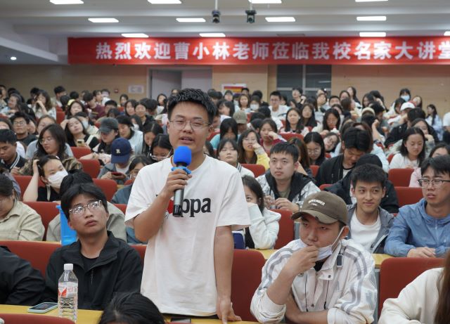 讲座尾声,现场求知氛围依旧热烈。面对同学们的踊跃提问,曹小林老师耐心解答,建议大家通过剖析不同类型故事提升创作能力,并鼓励每个人“写好自己的人生剧本”,勾勒独特的生命画卷。三小时沉浸式分享中,曹小林老师以渊博学识与幽默讲解,带领师生穿梭于多元故事世界,解锁艺术魅力。未来,我校学子将以梦为笔,在故事创作的天地中续写新篇。