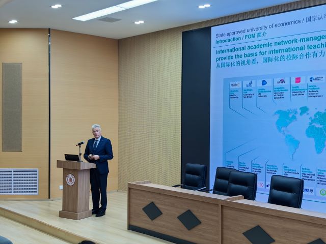 10月16日,国际交流学院特邀德国FOM大学Andreas Stoffers教授来校交流。讲座中,Stoffers教授系统介绍了FOM大学以实践为导向的课程体系与人才培养模式,为师生提供了了解德国高等教育特色的窗口,也为学校进一步推进国际化合作与交流奠定了坚实基础。