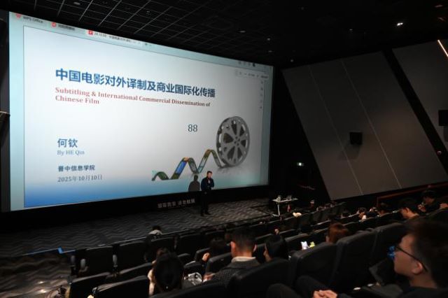 10月10日,电影商务产业学院特邀北京真之影文化传媒公司董事总经理、知名电影译制专家何钦老师,在万画影城带来《中国电影对外译制与跨文化传播》专题讲座。何钦老师以“译制是文化对话”破题,通过丰富案例,深入浅出地阐释了如何通过精准的语言转换与文化转码,让中国电影更好地驶向世界舞台。他特别强调,新时代的电影人才需具备“双语思维”与“跨文化洞察力”,讲座为师生理解影视产业国际化提供了宝贵视角。