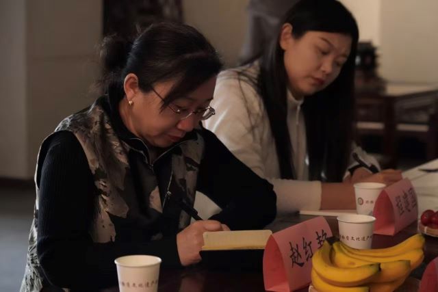 下午16:00,顾朝曦老师与学校师生、古城开发中心副主任任丁文、晋中市太谷区文化馆馆长田爱民、三晋文化研究会主席程建国、晋中市太谷区文旅局非遗项保护中心主任赵红艳、晋中信息学院非物质文化遗产研究中心主任赵晋锐、网红达人智慧相会于非遗博物馆,围绕非遗传承、古城保护与文旅融合发展展开座谈。期间,顾老师对太谷深厚的历史文化底蕴给予高度认可。面对当前太谷以年轻化、科技化手段让传统文化“活起来”的目标,以及AIGC非遗短剧创作、数字化展示等非遗博物馆活化传承的特色行动,顾老师对此表示极大的肯定,并鼓励持续探索“保护+创新+传播”的融合路径,让太谷古城的烟火气与非遗的文化魂相得益彰,推动地方文化与高校资源深度联动,书写文旅发展新答卷。
