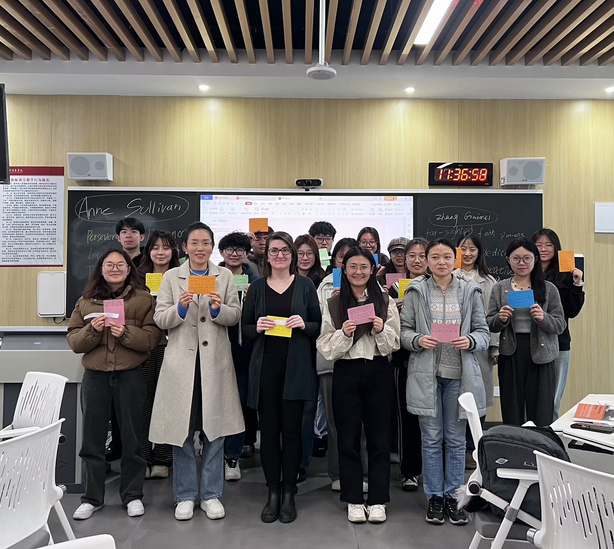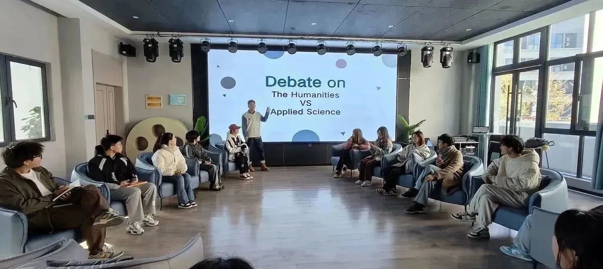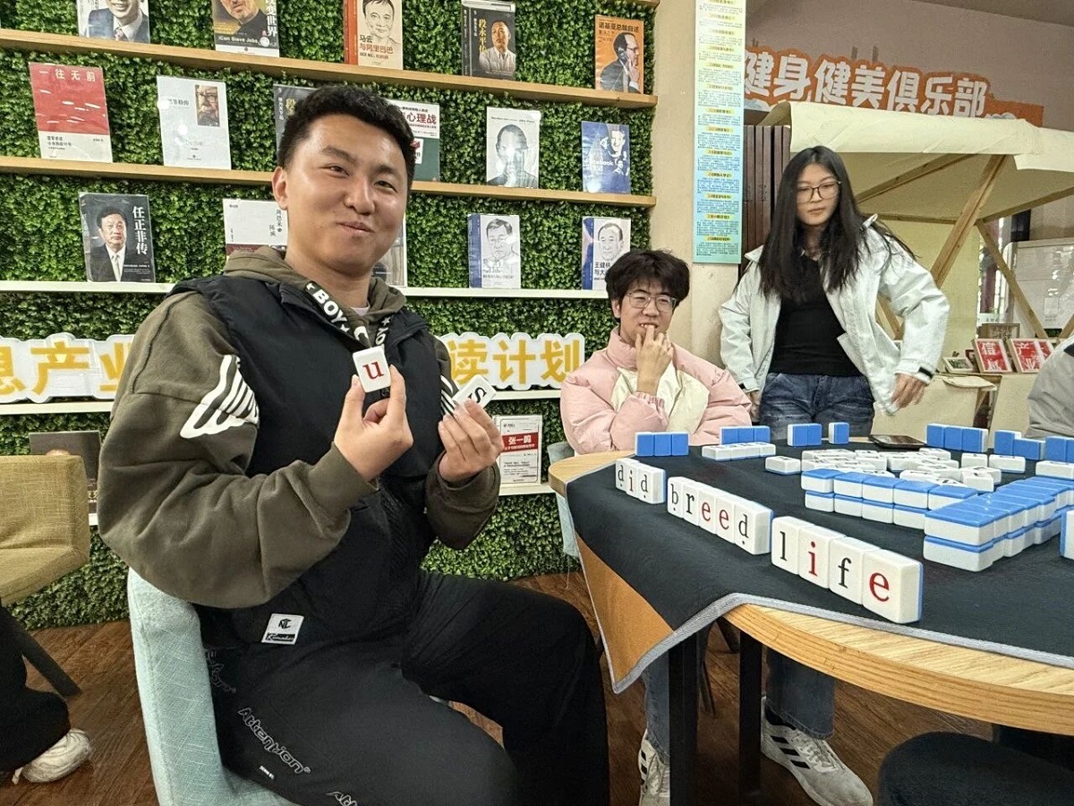 围绕“学”的互动体验,激发兴趣和动力。英语课堂活动丰富多样,涵盖英语演讲、辩论、播客等多种形式。在王哲仁老师的英语课堂上,同学们可以以脱口秀形式完成全英文创作。王哲仁老师还设计出“英语麻将”游戏,学生通过麻将牌组合单词进行比拼,在竞技中轻松记忆,将枯燥的学习转化为轻松愉快的体验,在“玩”中高效学习,为英语学习开辟新路径。