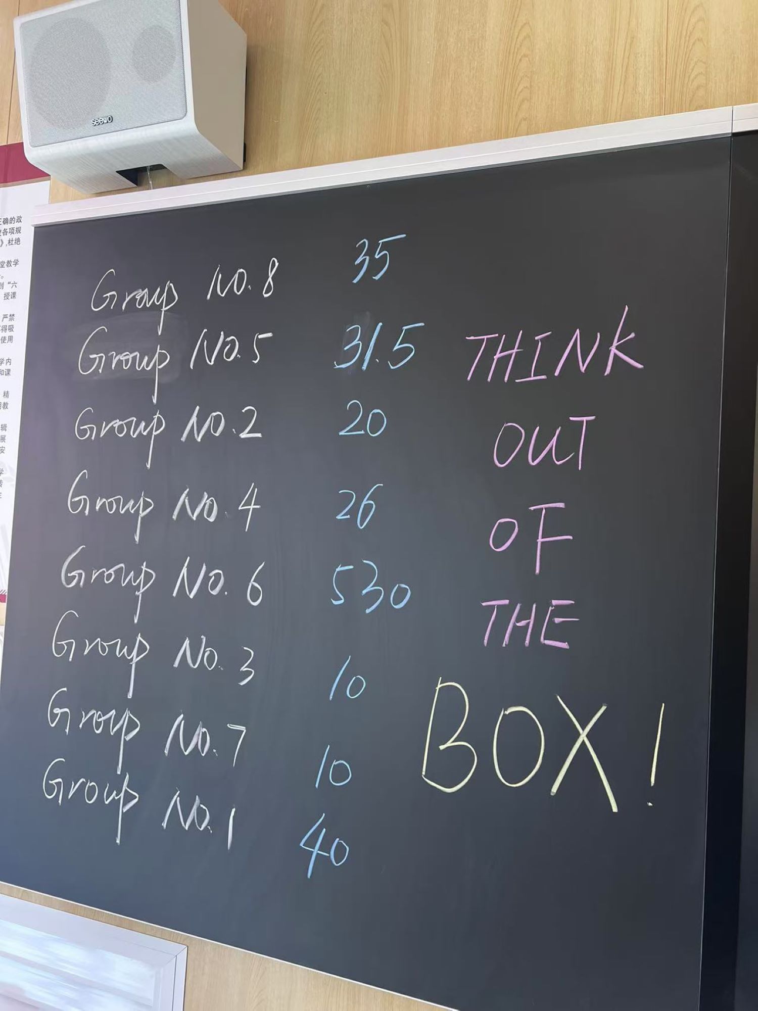 “耳闻之不如目见之,目见之不如足践之。”《战国策》中的这句古训,在大学英语课堂的实践活动中得到了生动诠释。为此,大学英语4课堂开展了一系列实践活动,活动主题为“climbingthe career ladder”(攀登事业的阶梯)。实践活动巧妙地融入了本单元的教学内容,让学生在亲身参与中深刻理解和掌握知识,实现了教育润物细无声的效果。活动设计灵感来源于斯坦福大学著名的“think out of the box”(跳出固有思维)实验,旨在鼓励学生们突破传统思维模式,通过沉浸式任务引导学生将课堂所学转化为职场情境下的实际应用能力。