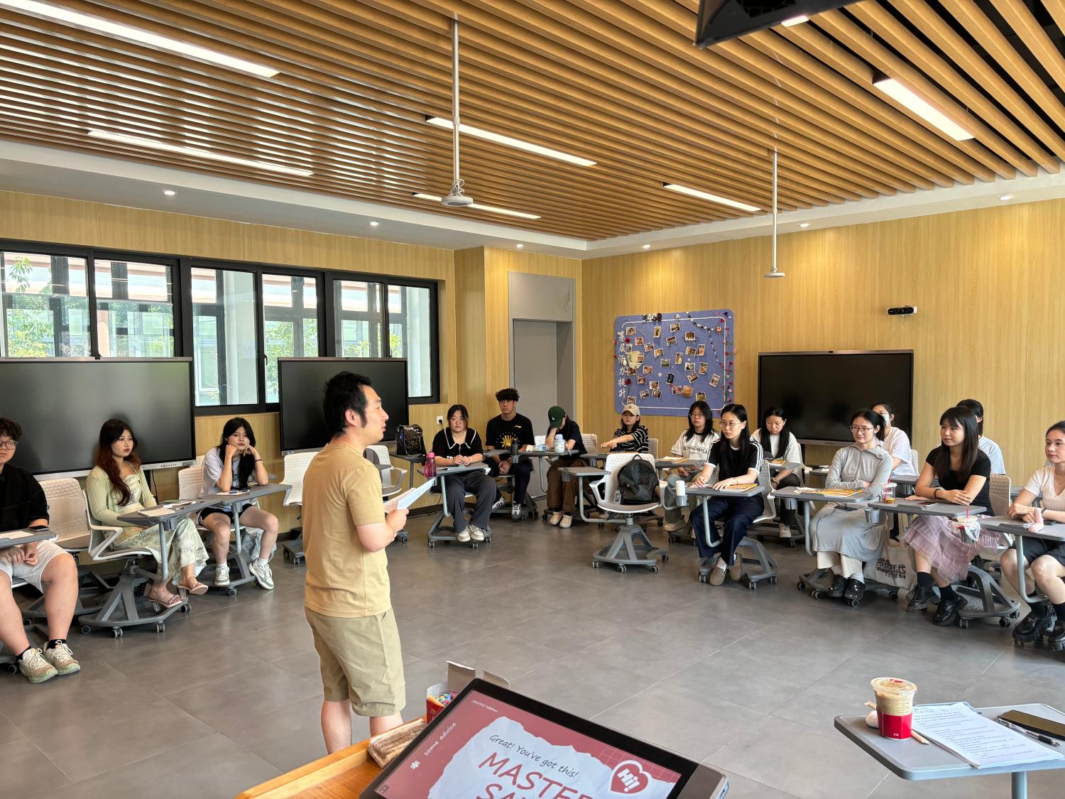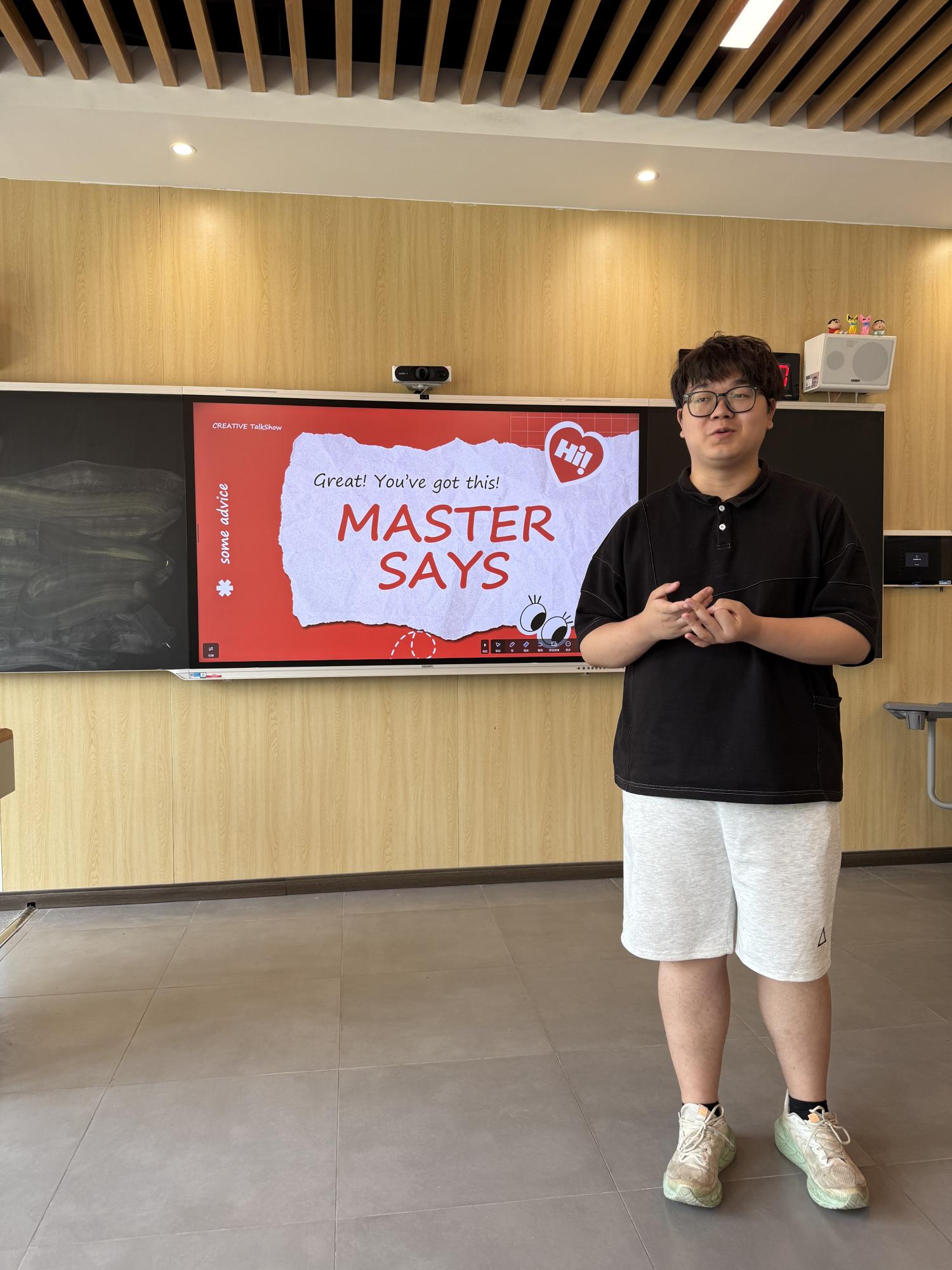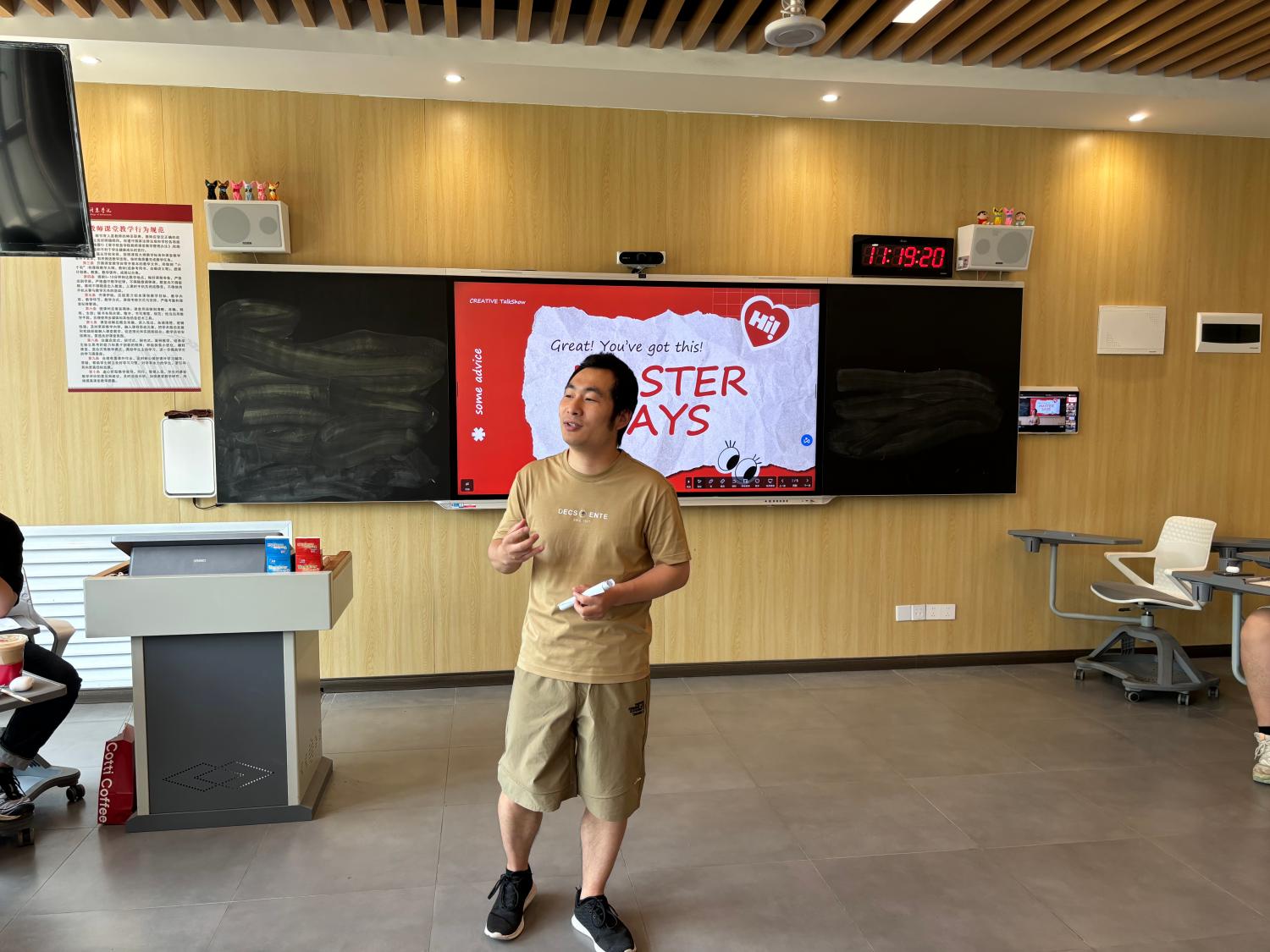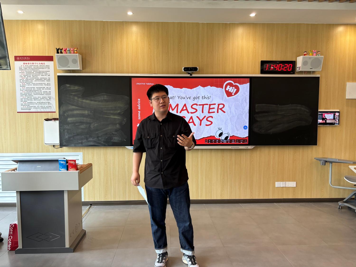 刘老师掏出多年喜剧笔记“当年我英文水平一般,段子冷场到能冻火锅……”但是,英语脱口秀要想讲得好,有三点需谨记①尴尬是创意的肥料②口音是文化的勋章 ③每个社恐心里都住着个段子手。此次分享环节帮助学生们揭开语言艺术背后的严肃思考。刘玉胜老师以自身经历,提出创作的原则:坚持文化主体性的表达立场,保持对现实问题的关怀。