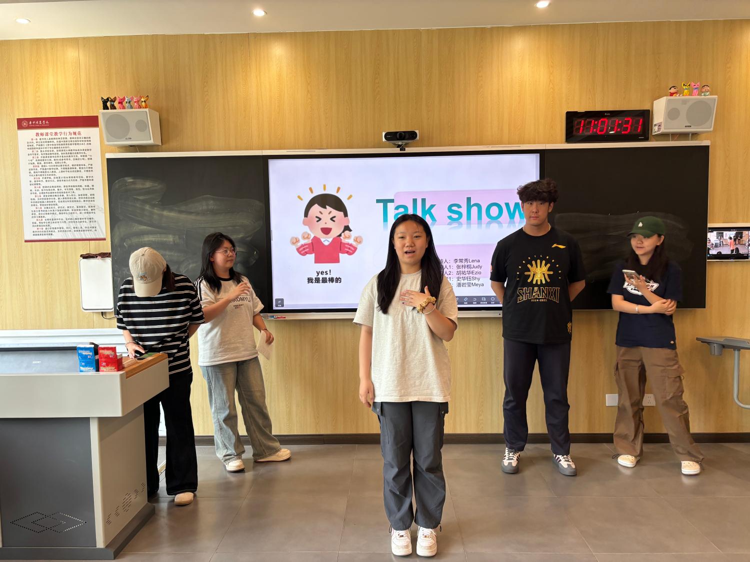 课堂在笑浪中收官,王老师说到“让思想跳踢踏舞,是学习语言最好的方式”。此次课堂教学实践,通过学术性与艺术性的融合,搭建了语言能力培养的创造性路径。非专业学生英语脱口秀的作品产出,更是印证了“以输出驱动输入”的教学效能。