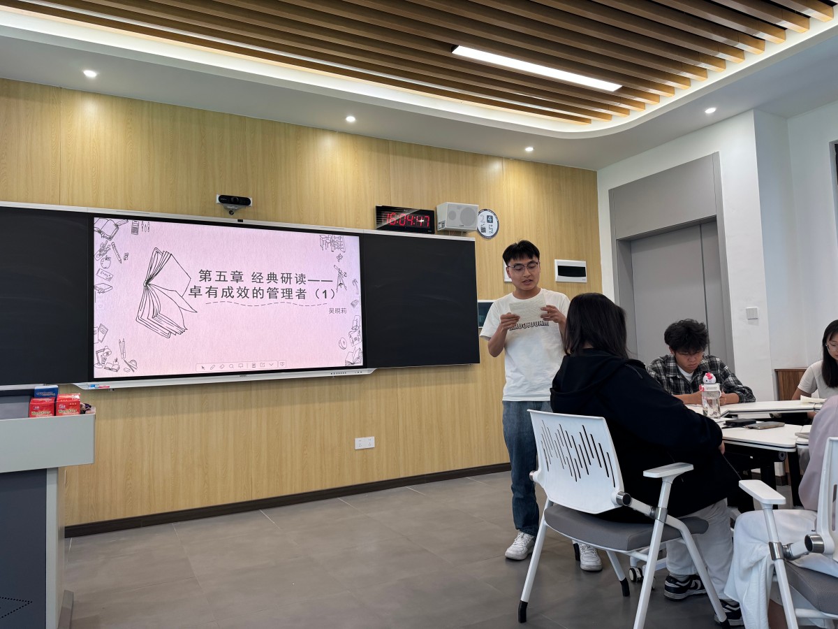 在当代管理学教育中,经典著作的价值历久弥新。本周,在吴晛莉老师主讲的《领导艺术与战略思维》课程上,一场以《卓有成效的管理者》为核心的读书心得交流会热烈展开。王雅楠、尹智弘、张文其、郭佳欣、张锦瑜等十位同学从不同视角切入,结合自身学习与实践经验,分享了阅读管理学大师彼得·德鲁克经典著作的深刻感悟。此次活动不仅深化了同学们对管理本质的理解,更在思维碰撞中激发了关于领导力与战略决策的新思考。