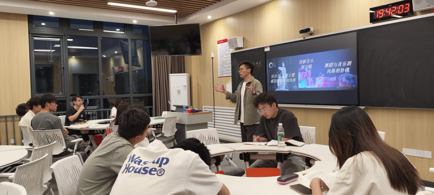 2025年4月29日,远景学院杨丽佩老师的音乐剧课堂,邀请到艺术教育中心的王华老师,开展了“节奏与空间的对话——音乐剧舞蹈的诉求与创编”的双师教学。本次教学以舞蹈为轴,从舞蹈肢体语言的诉求和排演实践出发,剖析舞蹈创编的方法和技巧,更好地帮助学生在创作过程,如何更好地运用舞蹈语言表达作品。