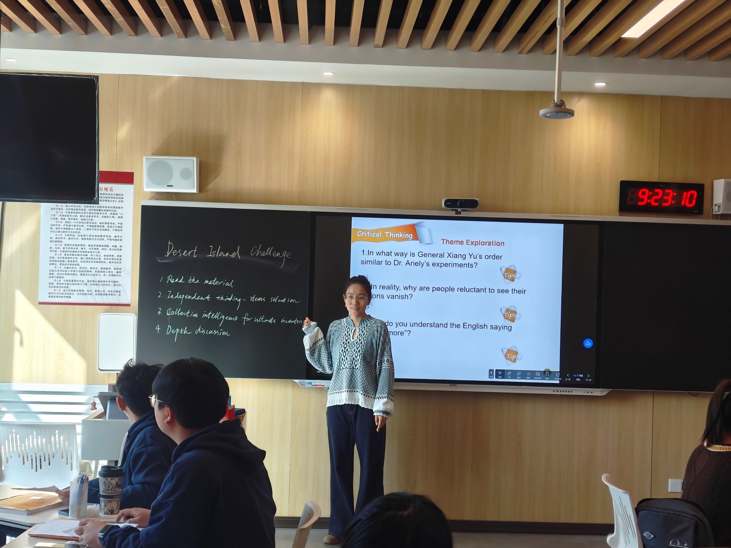 在远景学院的大学英语课堂上,平老师带领学生开展了一场以"Less is More"为主题的荒岛求生教学创新活动。结合大学英语4第6单元主题Lessismore,这场沉浸式课堂将语言训练与生存智慧相结合,通过物品取舍的博弈过程,有效提升了学生的英语语言应用能力和批判性思维。