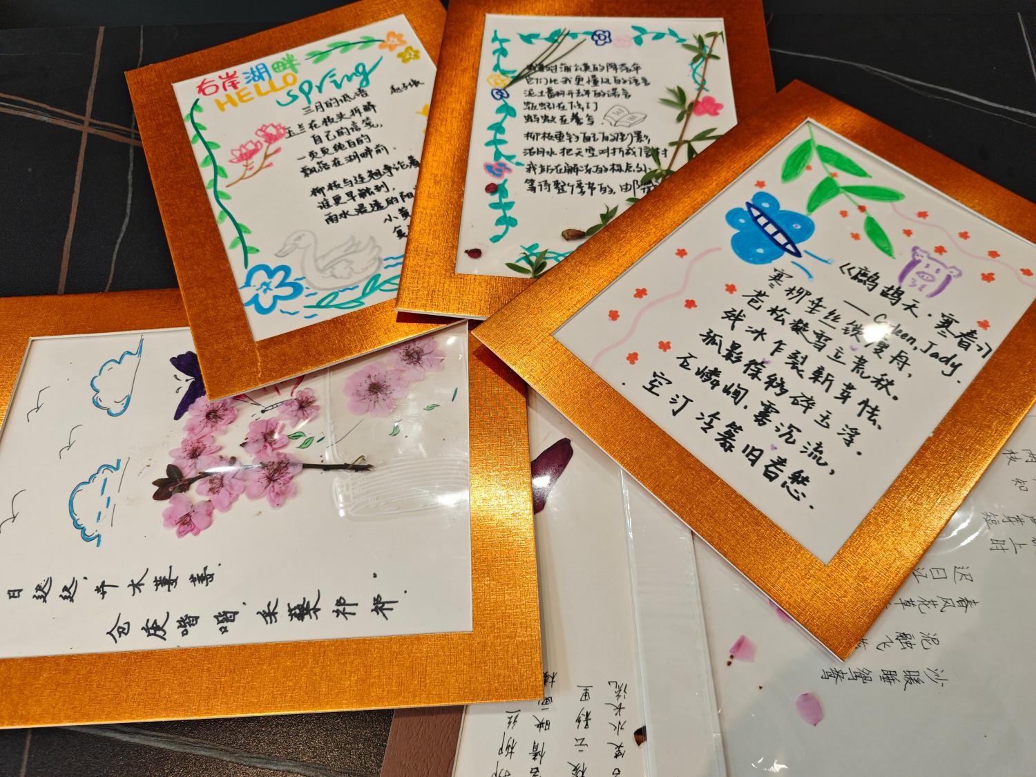 在分享过程中,学生们纷纷表示,他们在校园中寻找灵感时,发现了许多平时未曾留意的美好瞬间。有的学生在图书馆的角落里找到了创作的灵感,有的学生在操场上感受到了运动的激情,还有的学生在湖边捕捉到春日的气息。这些灵感不仅丰富了他们的诗歌内容,也让他们更加珍惜校园生活的点点滴滴。