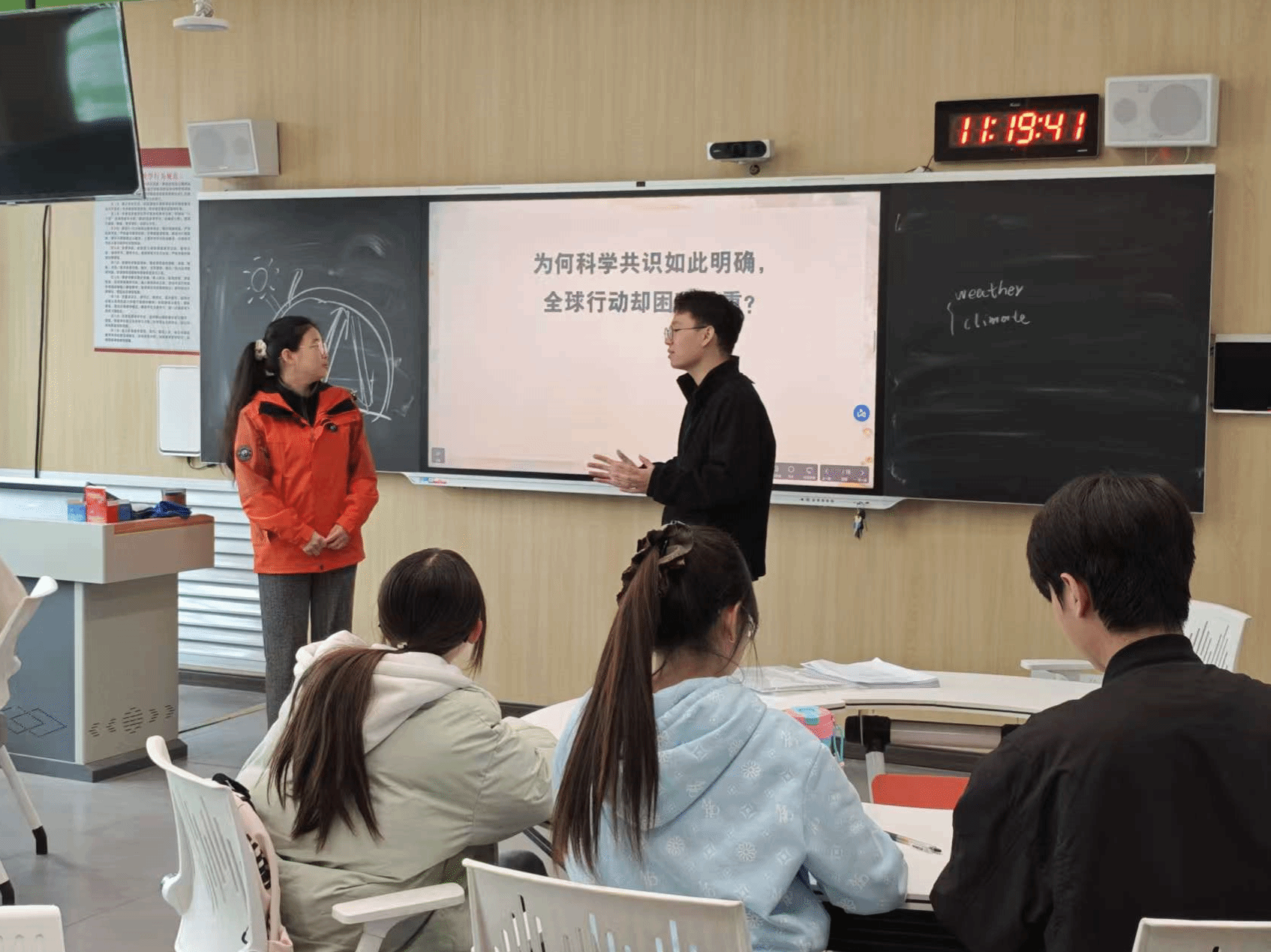 随着课堂上内容不断剖析,全球变暖所带来诸多影响,包括干旱、暴雨等极端气候事件的频发,冰川的消融与海岸带的变化等内容也随着浮现。段老师运用大量数据与案例揭示气候危机的紧迫性。他指出,全球变暖正以"复合型灾害"形式重塑人类生存环境:今年夏季全球多地突破历史极值的热浪导致医疗系统超负荷运转;印度恒河平原因干旱引发的粮食减产波及2.3亿人口;而巴基斯坦的世纪洪灾则造成3300万人流离失所。更严峻的是,气候敏感型传染病如登革热、疟疾的传播范围已向高纬度地区扩张400公里。"这些不是未来的预言,而是正在发生的现实。""每个0.1℃的升温都在改写人类文明的安全边界。通过上述内容的学习,学生们深刻认识到气候变化对自然环境和人类社会的深远影响。
