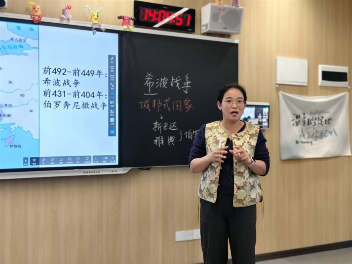 接着,张老师引领同学们回到历史现场,从源头切入,娓娓道来。他将目光投向两千多年前的古希腊世界,生动勾勒了雅典与斯巴达两大城邦在权力、制度与意识形态上的复杂对立,并深入分析了导致伯罗奔尼撒战争爆发的深层原因。他不仅讲述了修昔底德在《伯罗奔尼撒战争史》中关于“雅典势力的增长及其引起的斯巴达的恐惧”这一经典论断,更引导同学们关注当时具体的政治事件、联盟体系与经济冲突等多元动因。张老师的讲述赋予了“修昔底德陷阱”概念以丰满的历史肌理与具体语境,让同学们深刻认识到,任何宏大的理论概括都源于复杂而独特的历史情境,这一过程极大地激发了同学们运用历史思维对抽象理论进行情境化反思的兴趣。