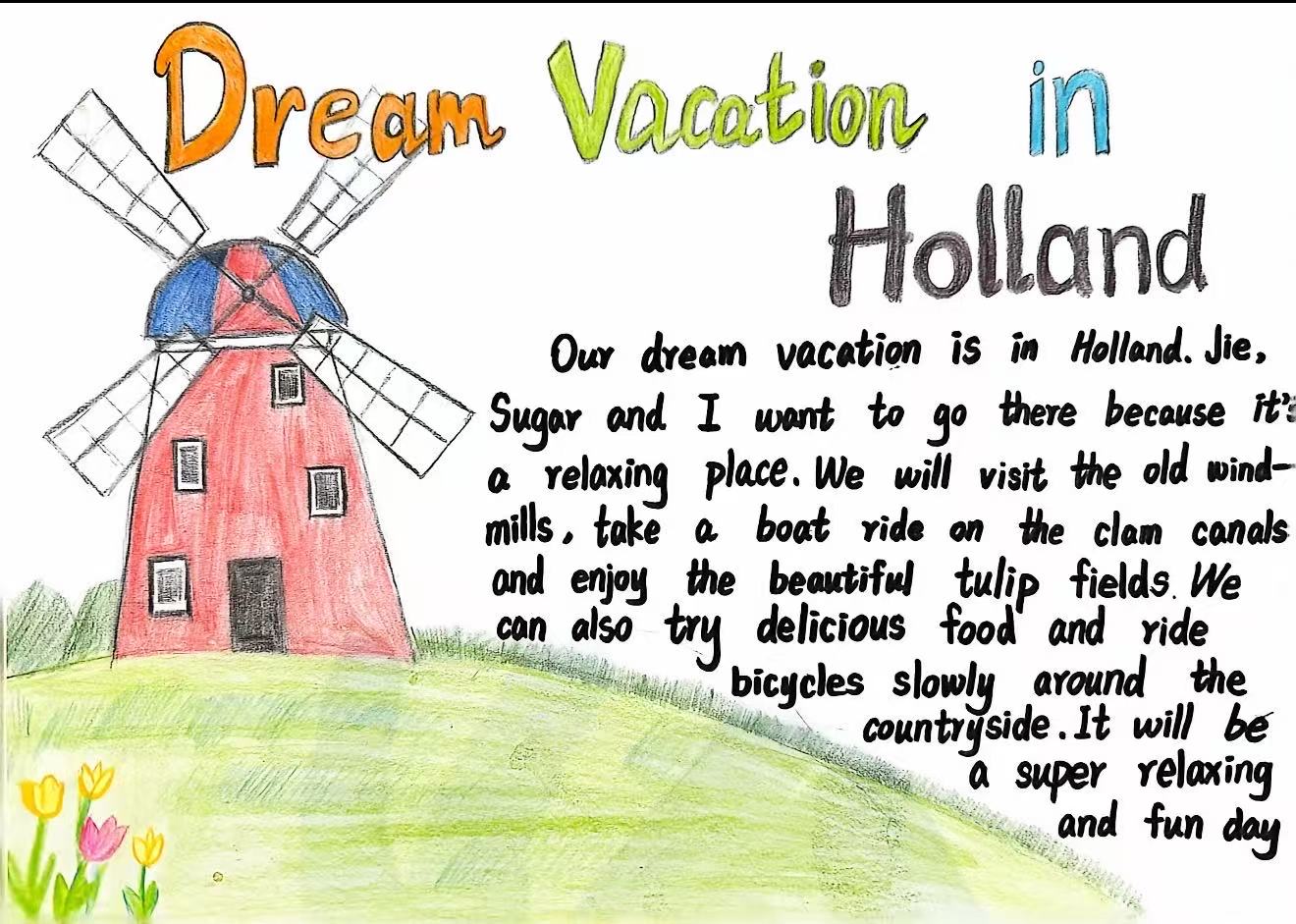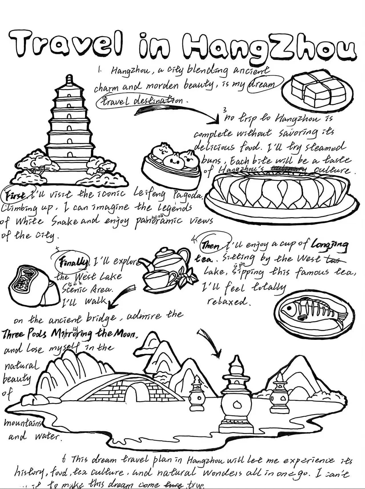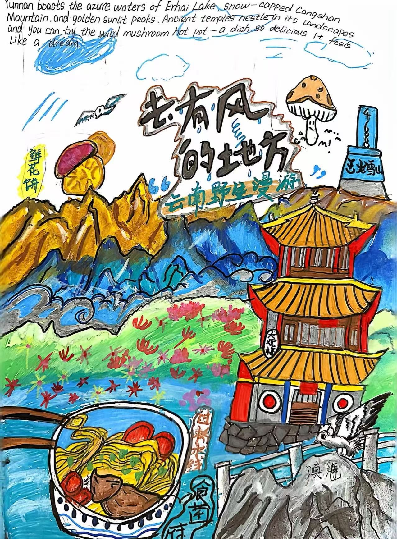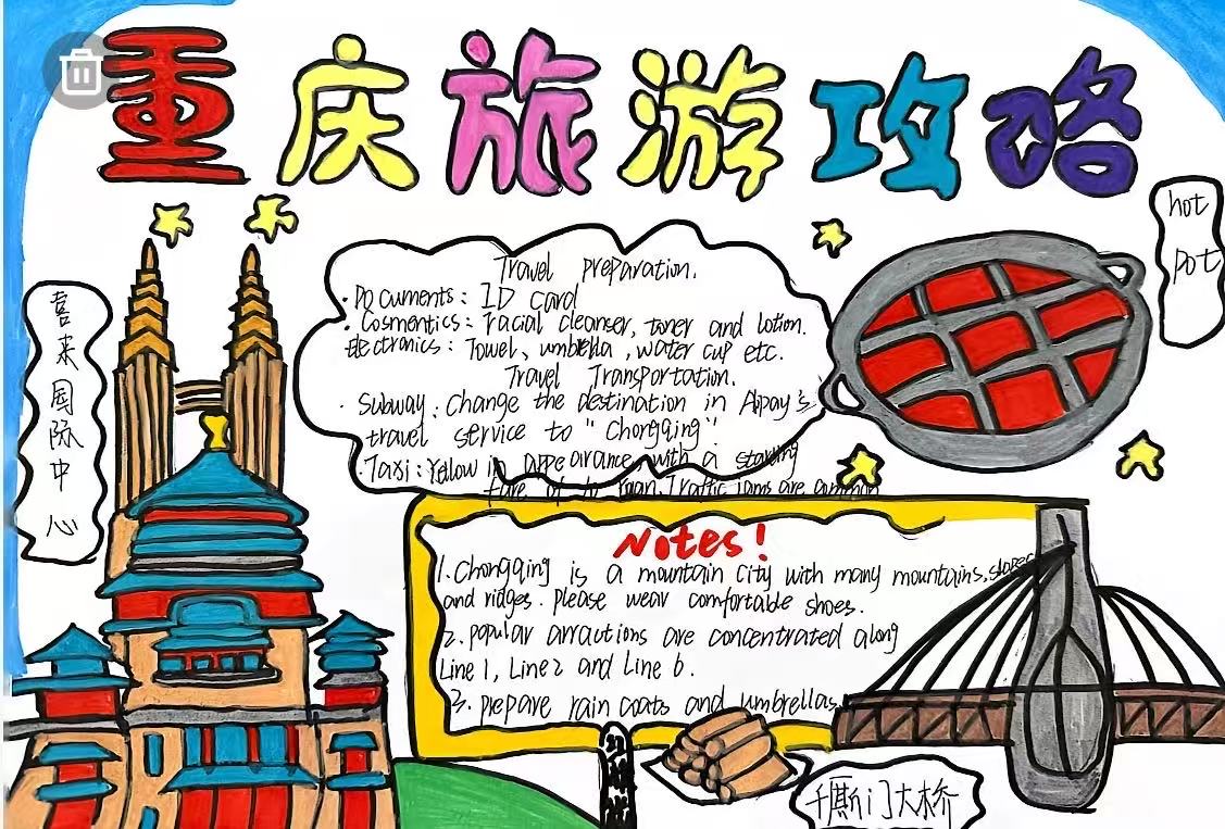 课堂尾声,两位老师带领同学们动手制作“Dream Journey”旅行图,写下心中向往的目的地、旅行心愿与计划,同学们互相交换卡片,分享彼此的旅行梦想,在憧憬与期待中为本次双师课画上圆满句号。