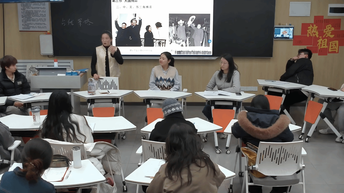 李玮莉老师从历史维度还原了冷战时期中美苏三角博弈的经典案例。她以1972年尼克松访华为例,深入剖析了“联华抗苏”背后的战略逻辑。60年代末,美国在美苏冷战中处于守势,而中苏关系因珍宝岛事件急剧恶化。美国通过“乒乓外交”、基辛格秘密访华等一系列操作,主动向中国递出橄榄枝。“尼克松政府在台湾问题上的妥协,正是为换取与中国合作对抗苏联的战略利益。”李老师强调,“大国博弈绝非偶然,而是国家利益与时代背景共同作用的必然。”她进一步指出,中美关系从1972年尼克松访华到1979年正式建交的曲折历程,印证了国际博弈的动态性:“福特政府时期中美关系停滞,源于美国实力回升后对华需求减弱;而卡特政府推动建交,则因美苏争霸再现焦灼。”这段历史启示学生:国际关系中的合作与对抗,始终围绕“利益”二字展开。