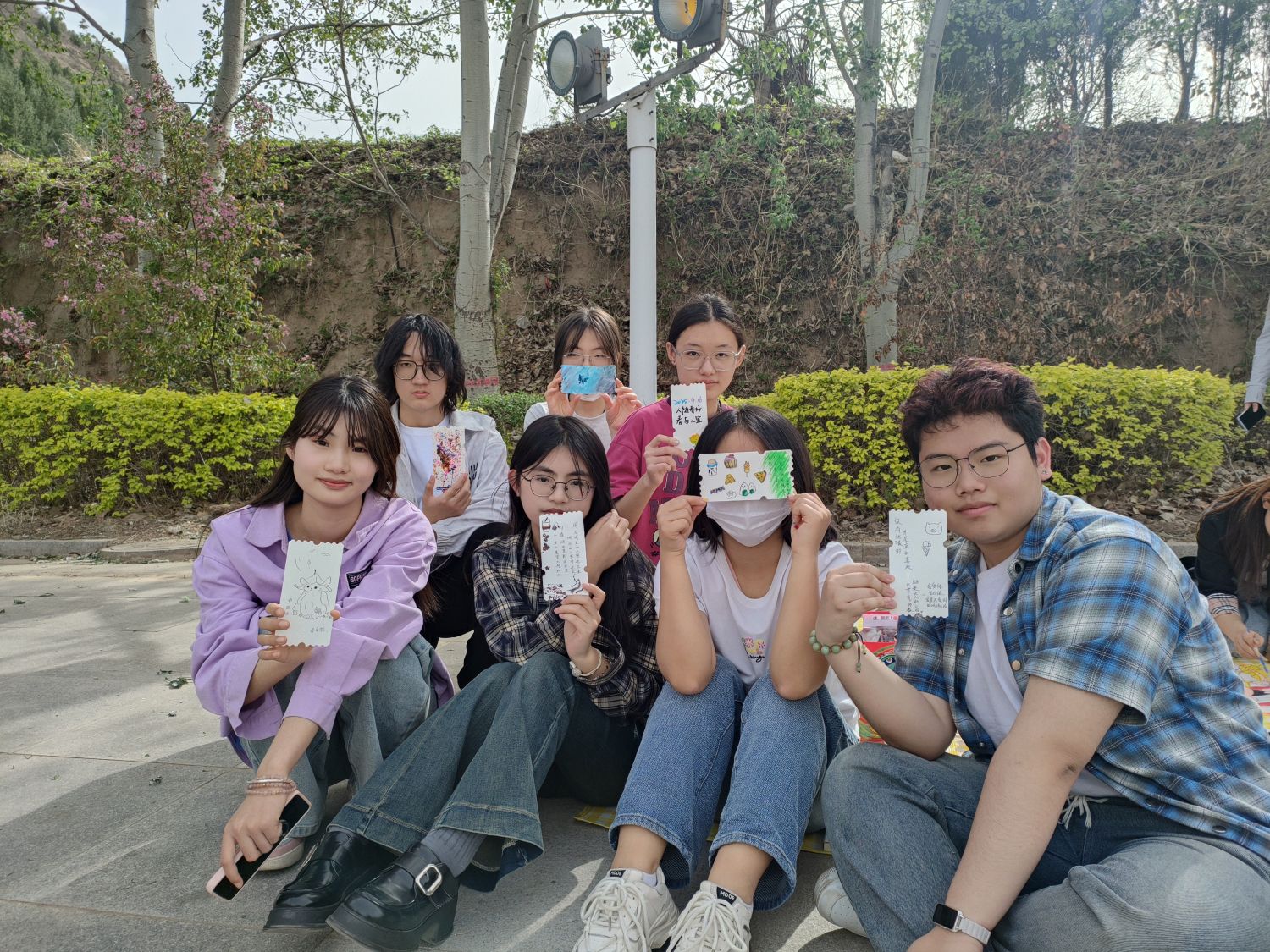 王老师特意为大家准备了空白票根,活动现场特设的“文学餐桌”上,《红楼梦》的茄鲞、海明威的西班牙冷汤、李娟的沙枣、王安忆的黑芝麻汤圆等二十余种书中美食化作实体书签。大家用手中的水彩,勾勒着对于书中美食的记忆。这一场别出心裁的读书会,与同学们手绘的“文学食谱”书签,共同构成这个春天独特的文化记忆。