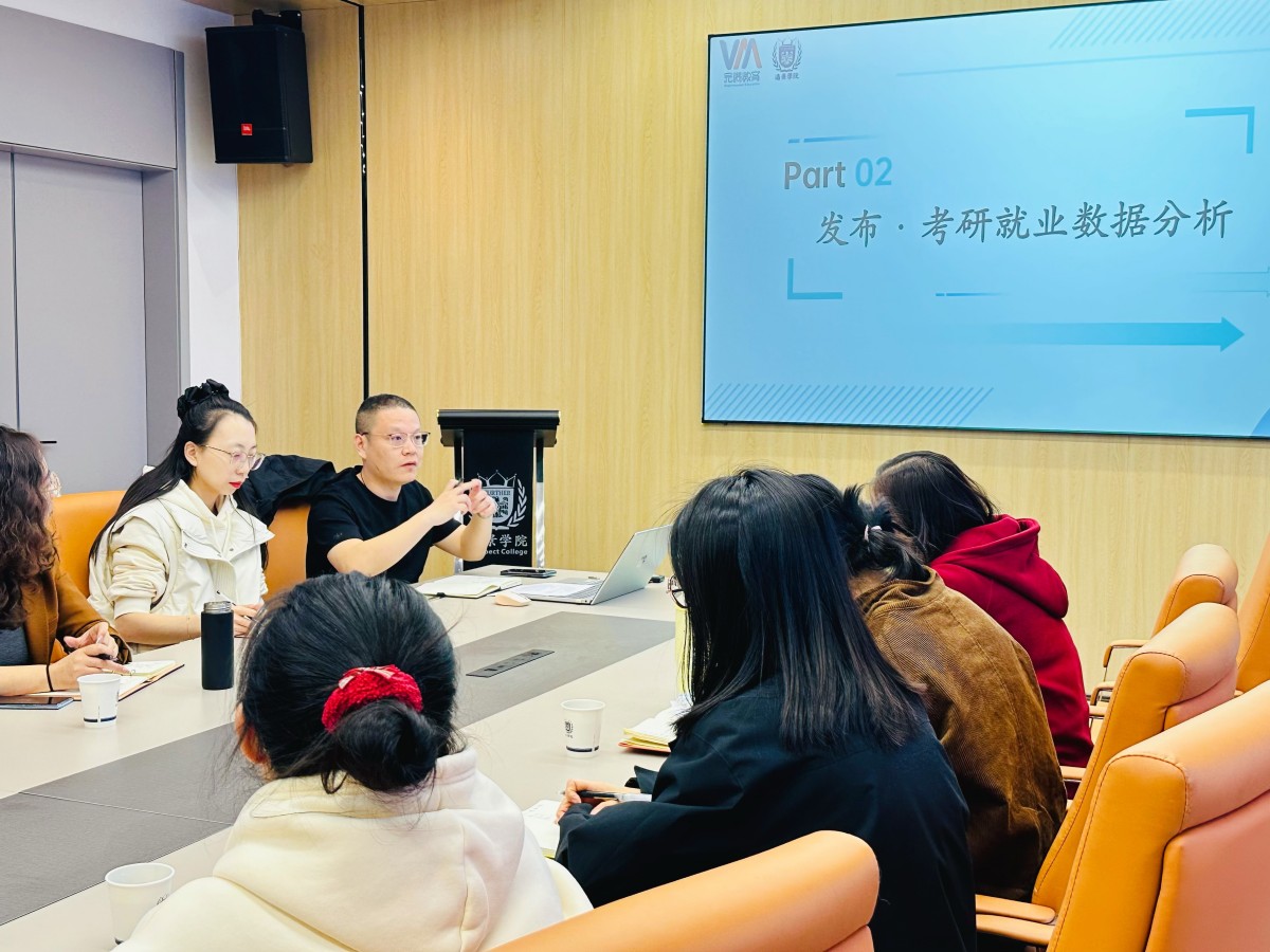 在交流环节,辅导员与全体成长导师聚焦毕业班学生多元发展需求,围绕考研升学策略优化、就业岗位精准推荐、西部计划政策解读、出国留学规划指导等议题展开讨论,实现信息互通与资源整合。针对不同学生群体特点,为学生提供全周期、个性化的成长支持,以务实举措打通高质量就业“最后一公里”。