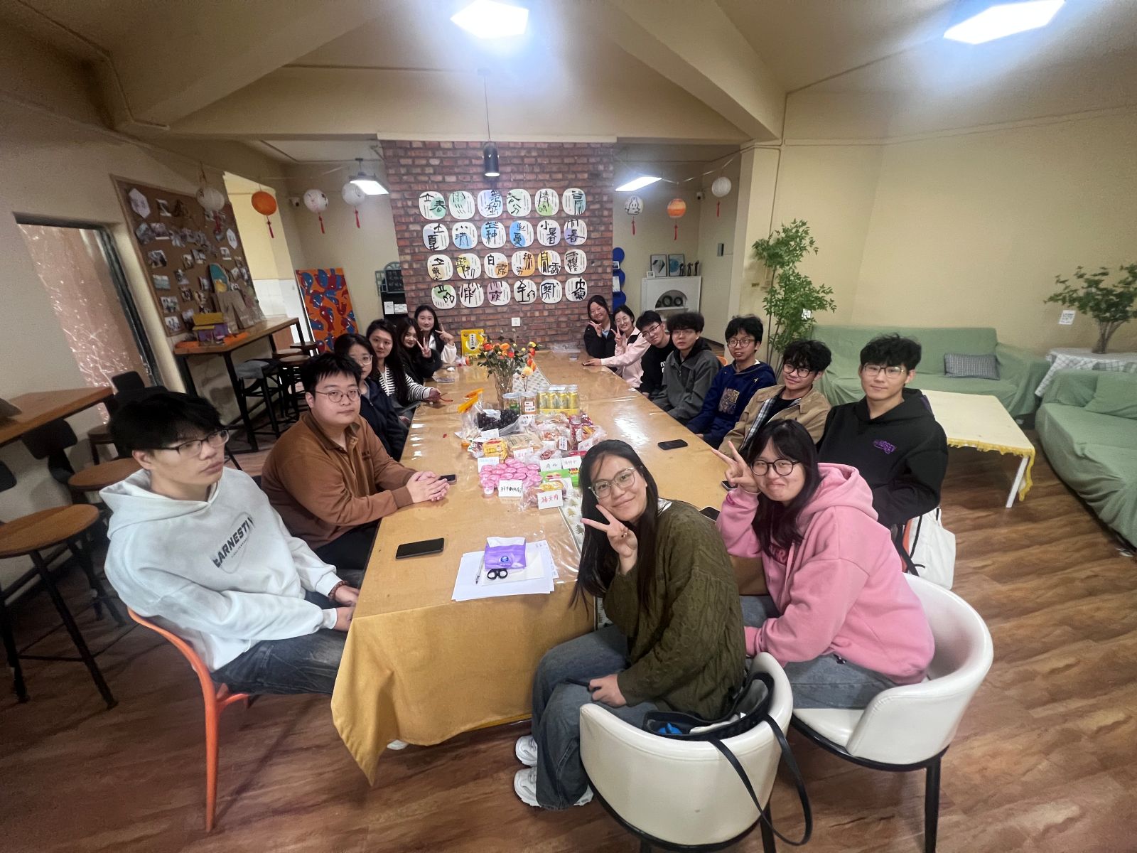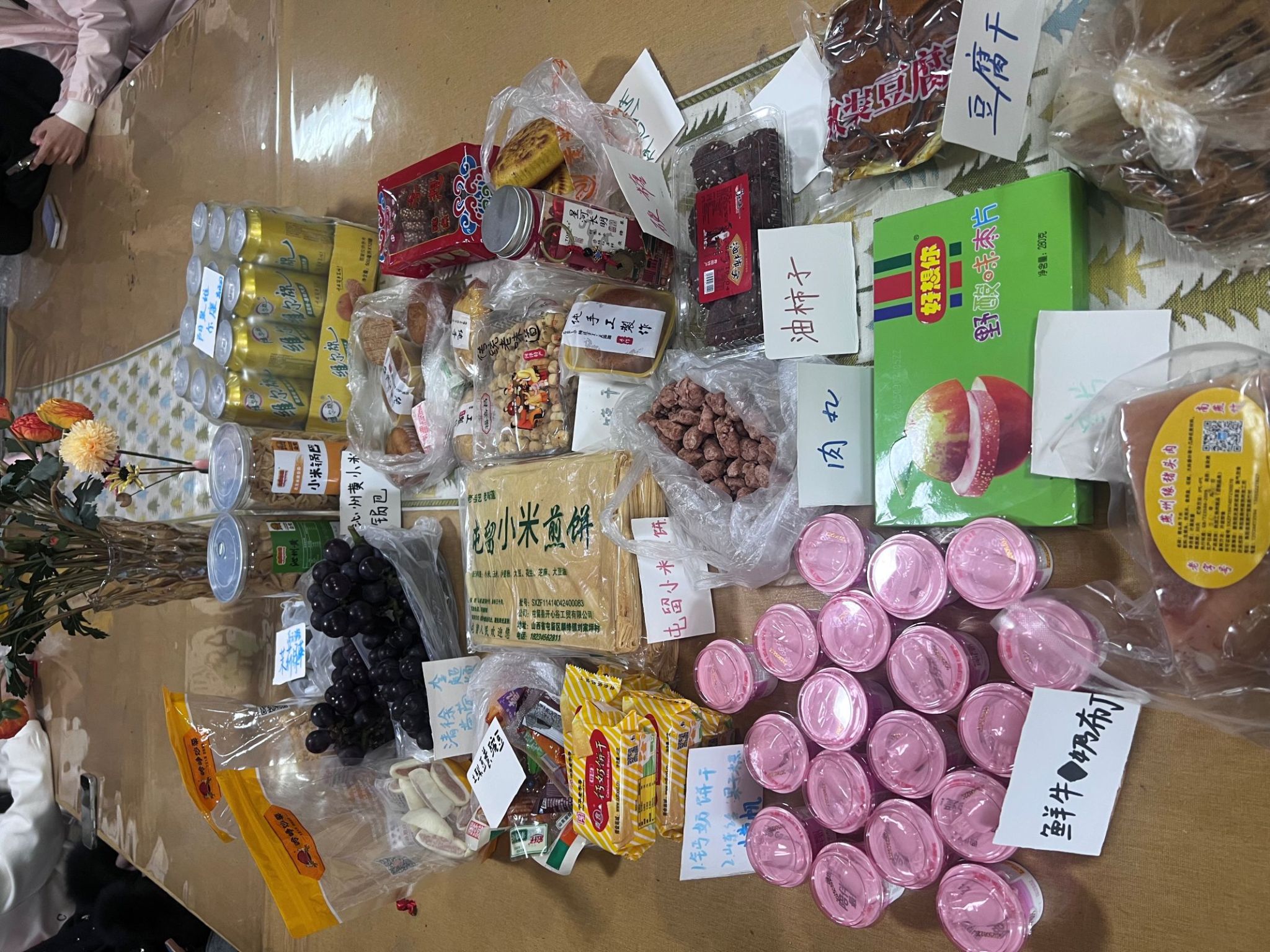 活动现场布置简洁而温馨,长桌上整齐摆放着同学们带来的家乡特产,每份特产旁都贴着写有姓名与家乡的标签,让现场充满“家”的暖意。此次活动以国庆假期学生返乡为契机,将“家乡味”作为连接彼此的纽带,为新团队搭建起轻松交流的平台。