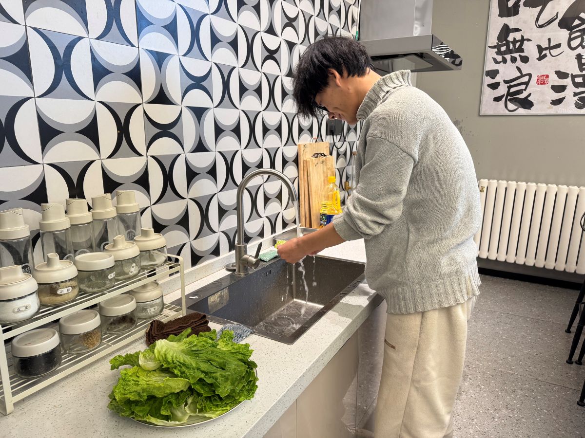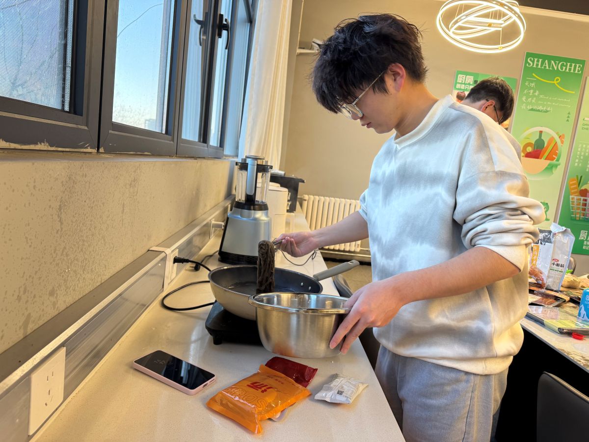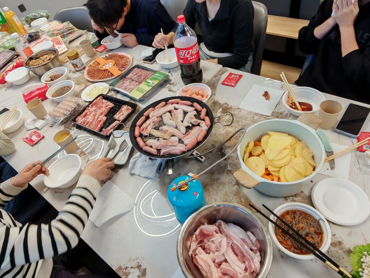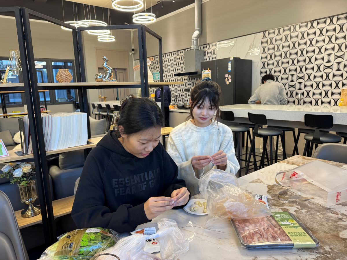 当暮色给上河的楼宇镀上一层温柔的金边,共享厨房的玻璃门内,早已升腾起烟火气与欢声笑语。吴晛莉导师组大一到大四的同学们在厨房中穿梭忙碌,这场烤肉之约,早已超越了美食的范畴,成了一段温暖的青春纪事。