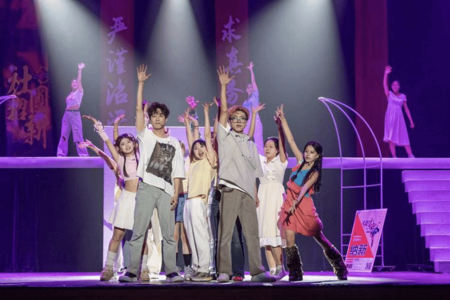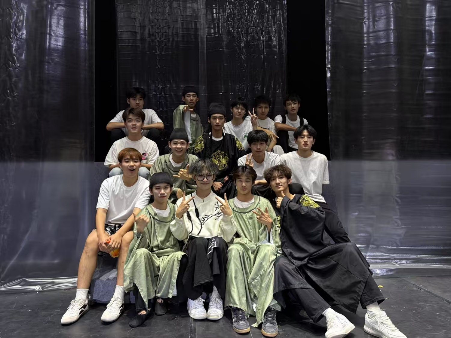 非专业演员的肢体表达,意外地成为最锋利的叙事刀。现代舞的舒展与街舞的爆发力碰撞,在“面具舞”中化作情绪的具象:喜怒面具下,肢体的抽搐与舒展,是青年在社会化进程中被撕裂的灵魂独白(那些对着证书卷轴狂舞的瞬间,分明是对“成功学模板”的无声诘问);“布匹之舞”里,撕扯布条的动作如青春的茧房爆破,每一道裂痕都漏出成长的微光。尤为震撼的是“鸡毛掸子扫‘一地鸡毛’”的舞段——舞者弯腰的弧度,既是对琐碎日常的清扫,更是对数字化规训的温柔反叛。这些充满生命力的肢体语言,将青春的混沌、挣扎与觉醒,酿成了舞台上的情绪烈酒,让观众在呼吸与心跳的共振中,完成一场关于成长的集体疗愈。