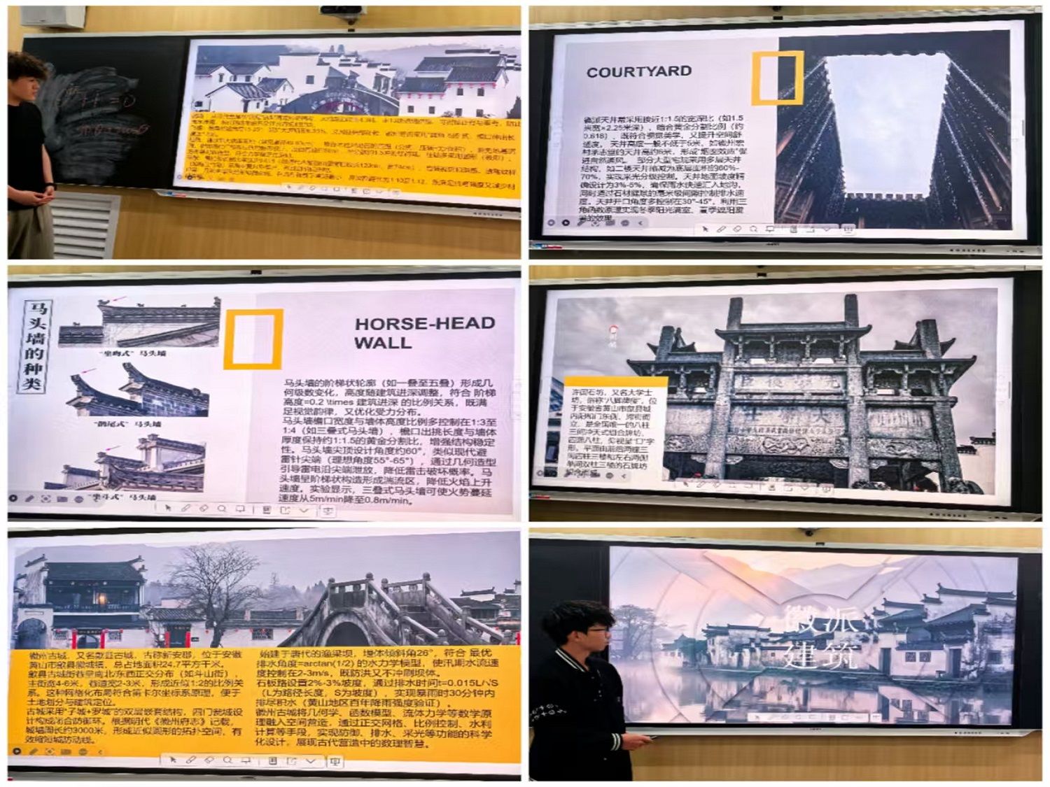 带着校园探秘的启发,学生们组成六个特色研学小组,开启更深广的建筑密码破译之旅。他们或执卷研读《营造法式》,或漫步徽州古村落,将课堂所学黄金分割比例、抛物线方程、微积分等理论知识,转化为解读建筑美学密码的钥匙。