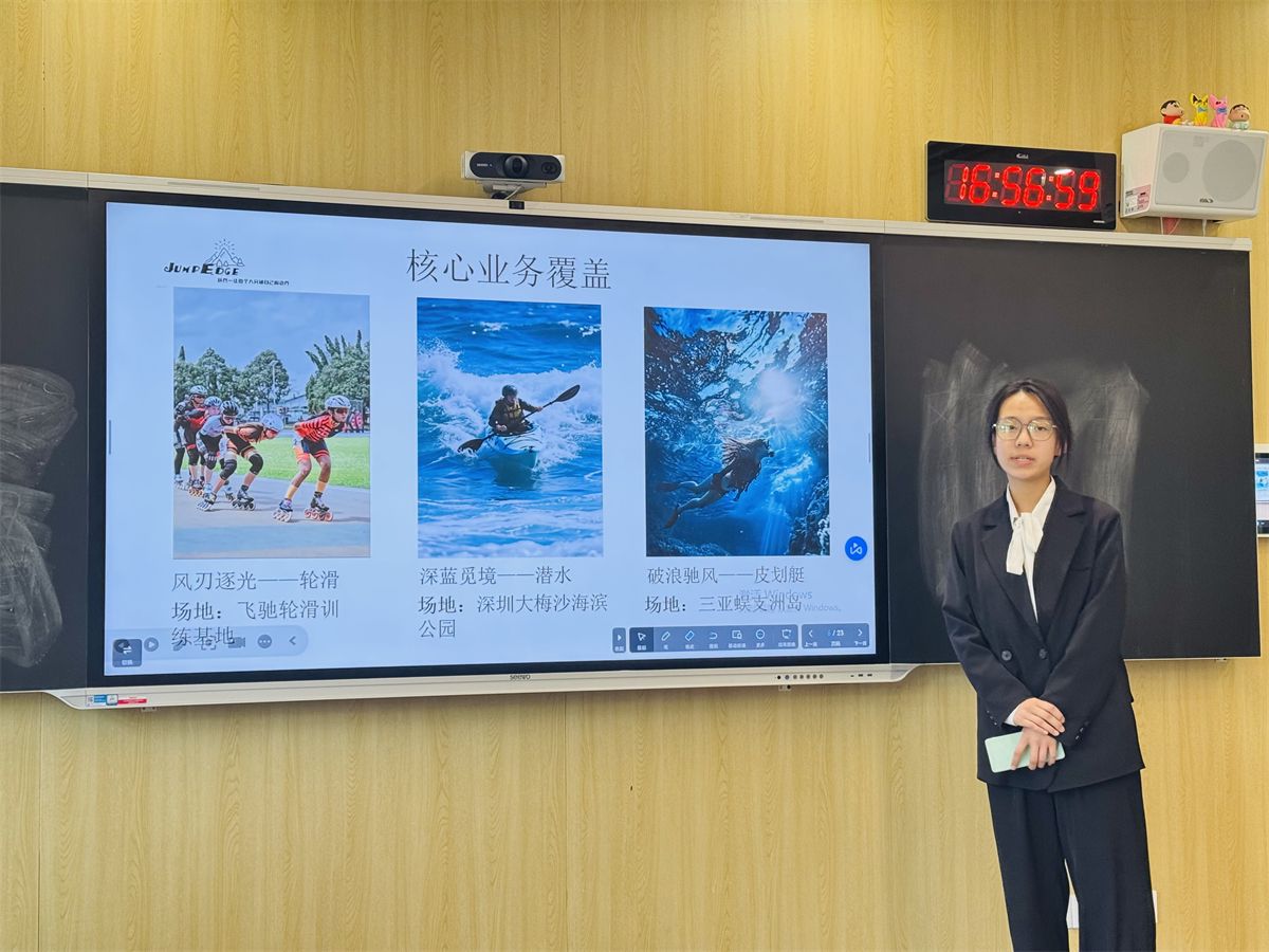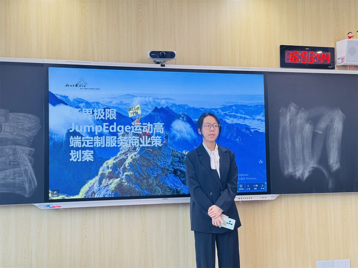 跃界极限(JumpEdge)运动高端定制服务——王雅瞳作为“投资人”,以精准的市场细分与高端化服务定位征服了评委。项目聚焦于运动爱好者的个性化需求,提供从装备定制到训练方案的一站式解决方案,并通过SWOT分析论证了其在细分市场的竞争优势。其创新点在于将运动科学、数据技术与奢侈品服务理念相结合,重新定义了运动消费的边界。