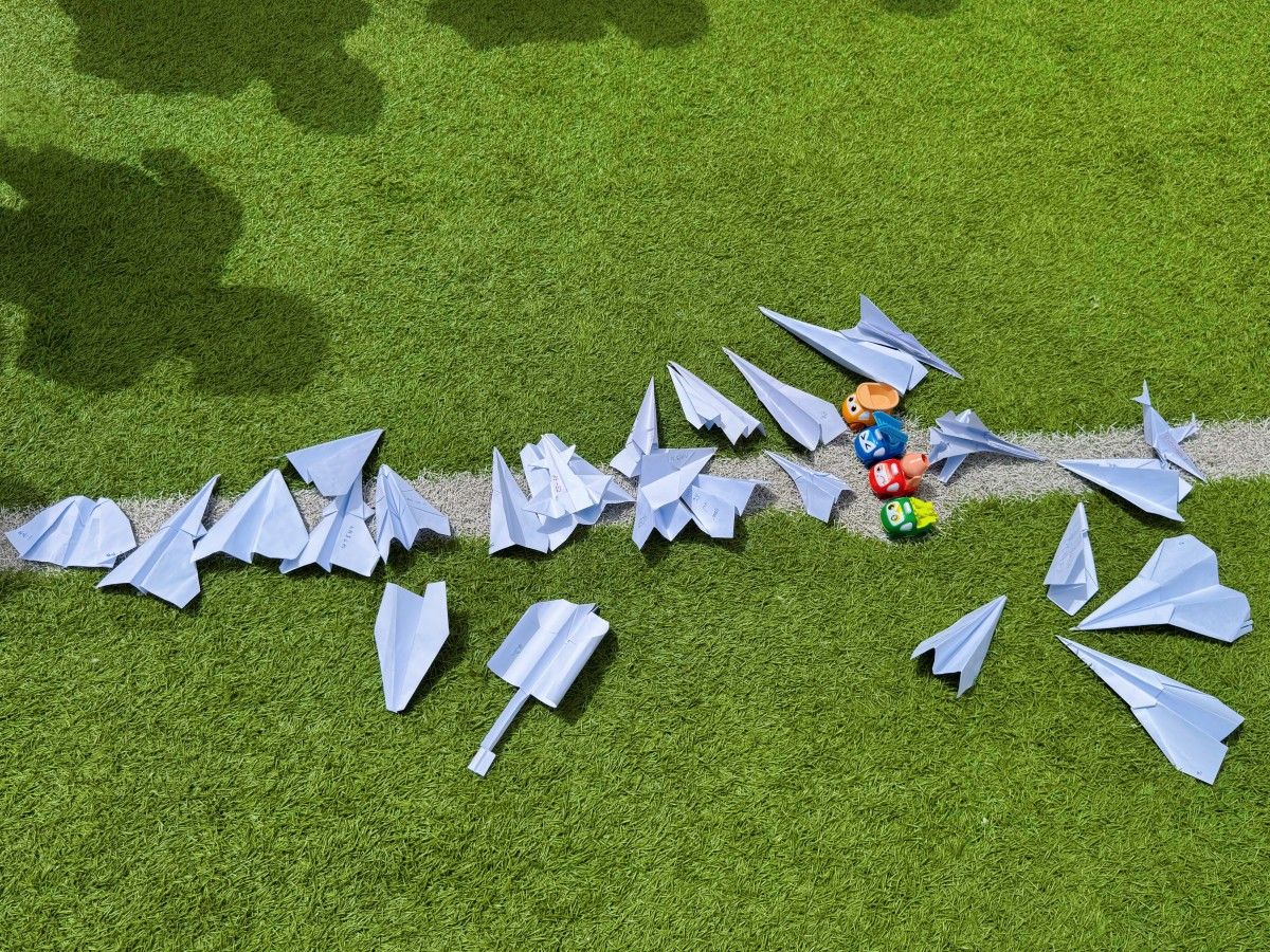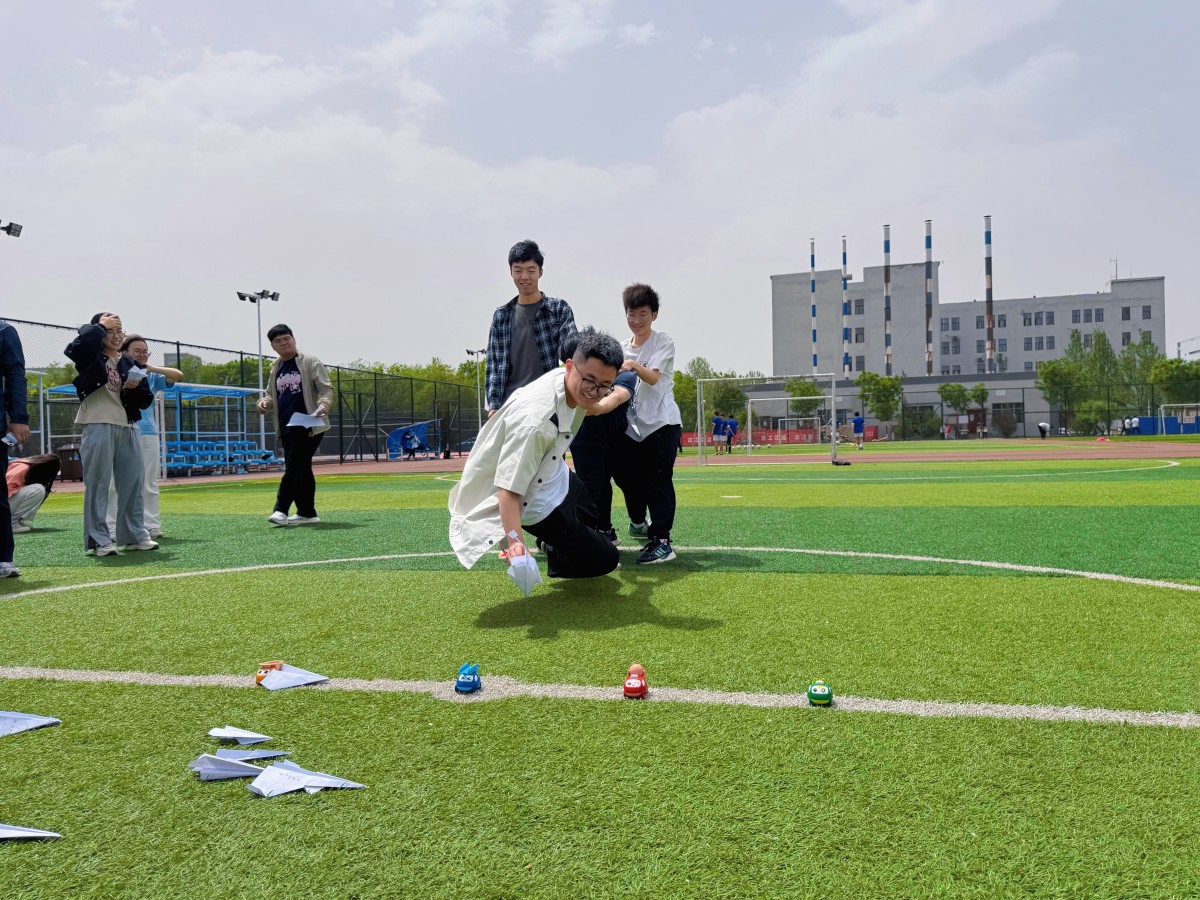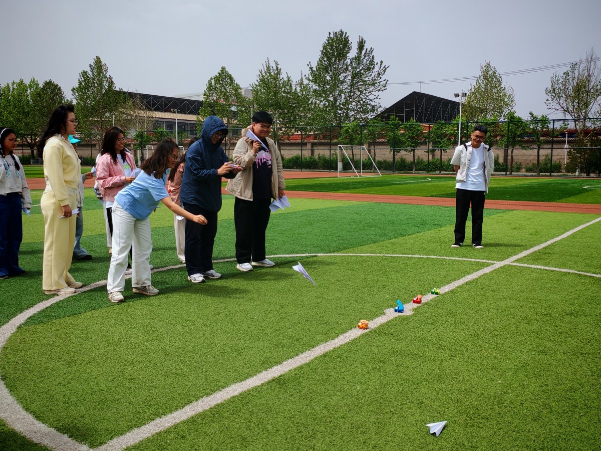 当理论跃入实践场域,足球场的绿茵化作立体沙盘,三块战术区分别对应“制空权争夺”“战略轰炸”“持久战续航”三大推演模块。在制空权战区,红蓝双方的纸机群从球场两端次第升空,俯冲、迂回、拦截的轨迹交织成网,同学们以滑翔角度与碰撞策略诠释杜黑“制空即生存”的铁律;轰炸区内,宽翼机群掠过模拟的交通设施区,精准打击与概率覆盖的辩论在此具象化;而在续航挑战区,限时30秒的“燃油耗尽”警报下,学生们反复调整投掷力度与高度,试图以最后一架飞机维系空中存在。
