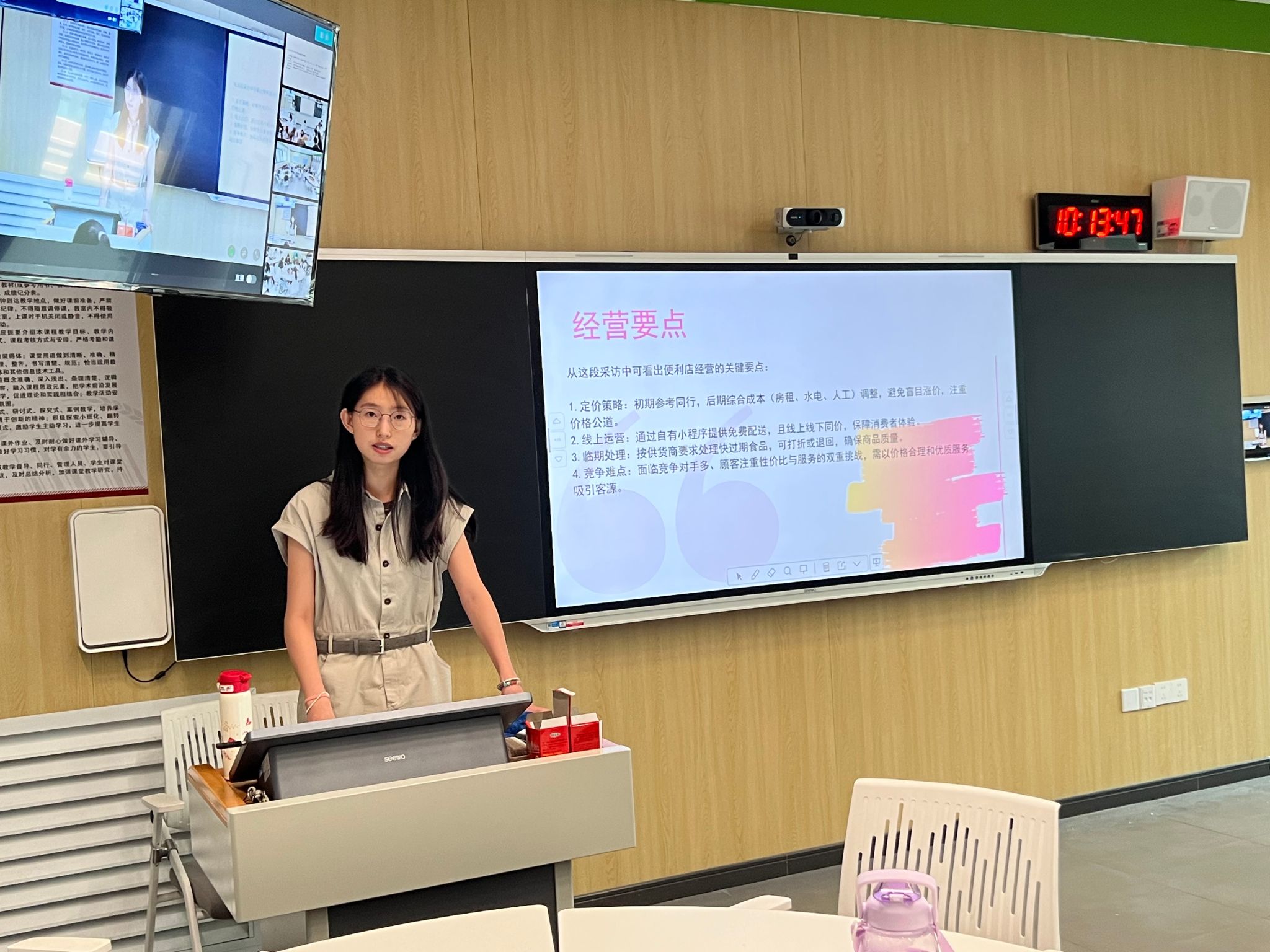 最后,程老师总结道价本质是捕捉消费者的支付意愿在同学们调研案例中,蛋糕店按复杂度分级定价水果店用9.9锚定心理价位西餐厅设计多套餐,均体现了对消费者需求的精准划分。这次实践课不仅训练了同学们的经济学思维,更让大家感受小微企业在成本压力、竞争加剧下的生存智慧,以及消费者行为对市场形态的塑造力量。