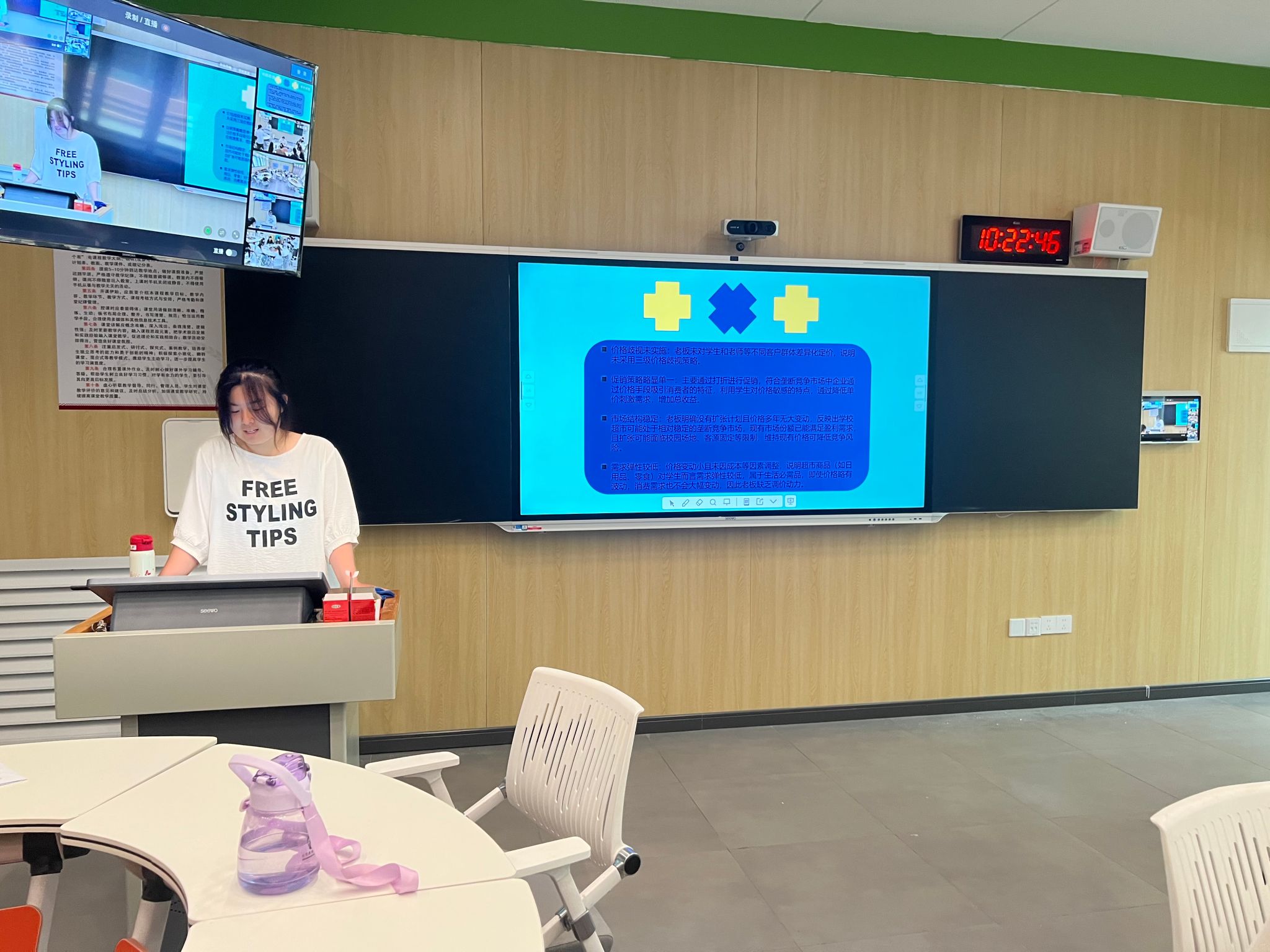 计划开设校内西餐厅的小组通过调查发现,学生对人均40-60元的价格接受度高,且偏好学习社交一体化场景。他们灵活运用三级价格歧视理论,推出学习套餐社交套餐考试周能量套餐等进行差异化定价,并计划通过抖音打卡、校园博主合作提升曝光。他们的方案获得了全班极大关注。