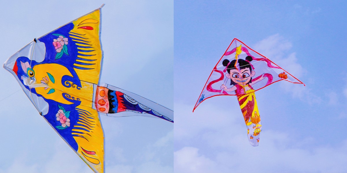 山腰开阔处,一场“与风共舞”的非遗制作拉开帷幕。师生执杆为骨、铺绢作纸,在经纬交错间复刻燕子、哪吒等传统风筝形制。“扎、糊、绘、放四艺讲究‘骨正、形美、意深’”。同学们以水墨点染蝶翼,用工笔勾勒哪吒,将诗词题跋落款于风筝尾部,让传统文化符号随春风跃动苍穹。
