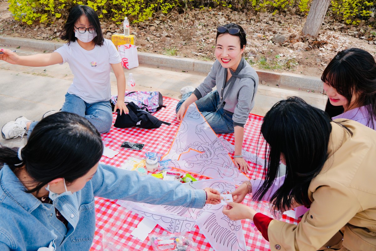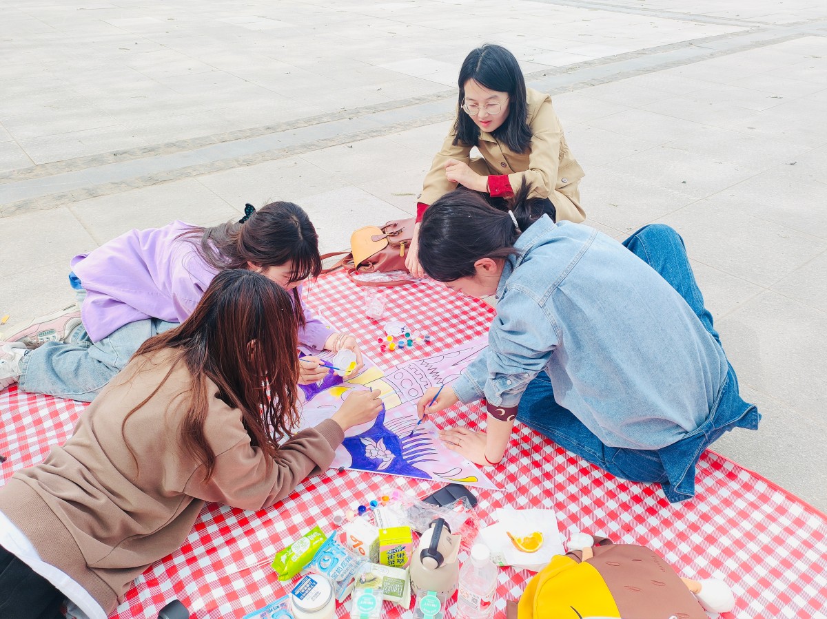午后,师生共创的风筝竞逐晴空。师生并肩执线笑谈“风筝线如同师生间的信任——太松易失方向,太紧恐伤羽翼”;学生们将“致真”“尚美”“笃行”等手书寄语系于风筝线,任其在云端舒展。野餐会上,师生围坐分享糕点与春茶,从《论语》中的“风乎舞雩”聊到乡村振兴中的文化赋能,笑语与茶香漫溢山野。