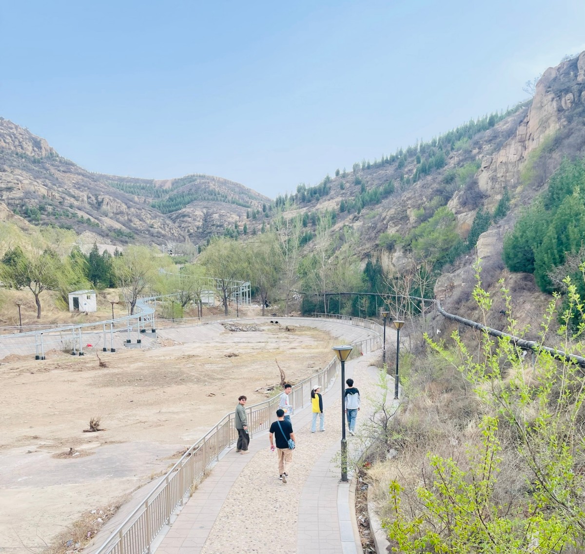 阳光热烈,师生沿凤凰山蜿蜒山径拾级而上。王慧敏老师以《诗经》中的草木意象为引,带领学生观察山间新芽破土、溪涧潺潺的春日图景;杨丽佩老师引导大家探讨“短暂性”与“生态性”的艺术表达,同时结合山体形态培养学生对空间声景的感知力;葛乔老师提出“山野媒介解码”,让同学们观察登山步道的标识系统、景区宣传物料等,分析自然景观如何被编码为文化符号;赵若男老师结合“仁义礼智信”分享《登山铭》:“仁为峰,义作径,礼化风,智成景,信作绳……”