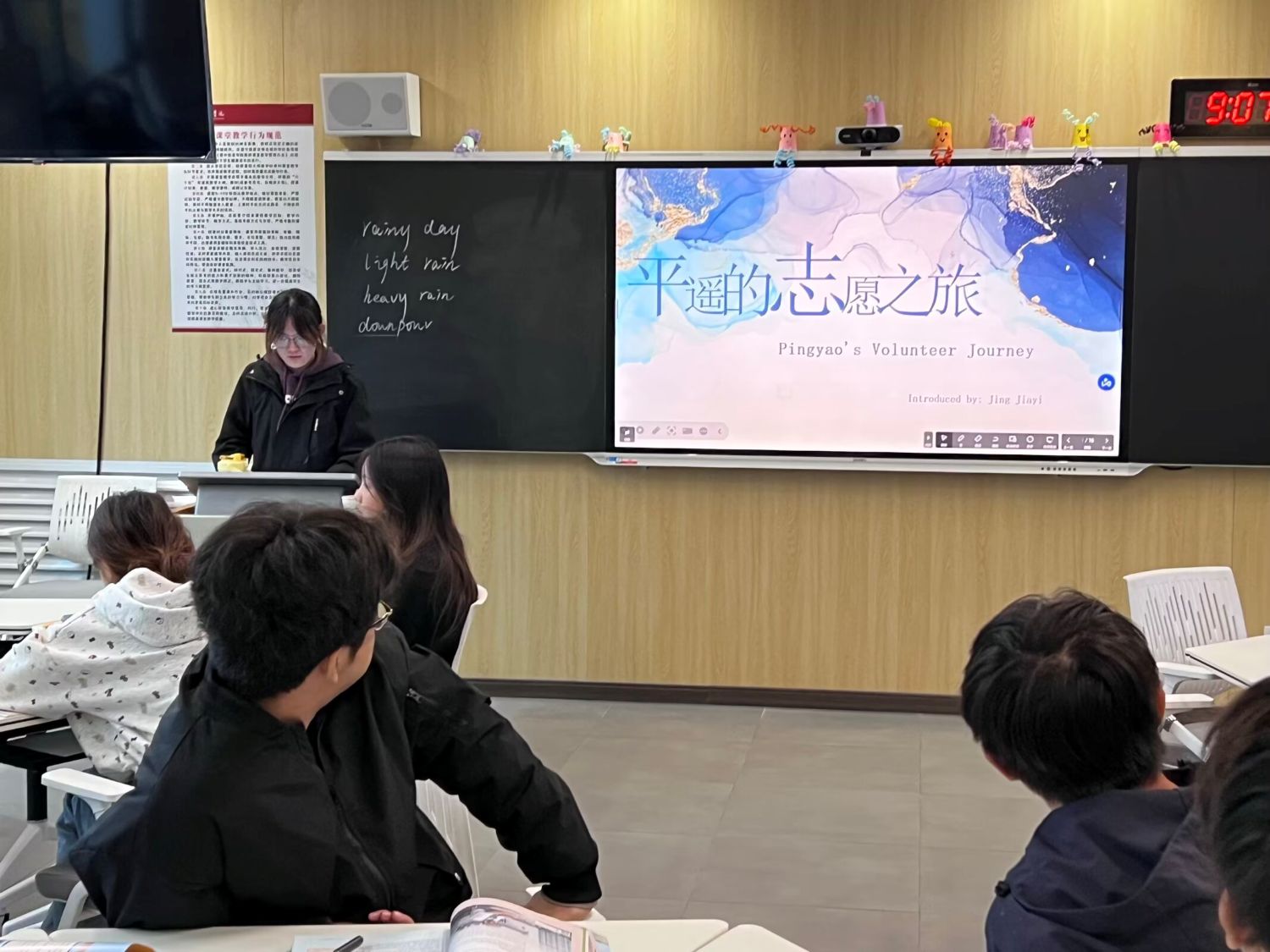 近日,平遥国际摄影展落下帷幕,晋中信息学院远景学院学生志愿者团队圆满完成服务工作。返校后,平静老师邀请志愿者们以英语分享复盘志愿服务经历 —— 这一分享是老师此前提前布置的任务,通过 “实践 + 复盘” 的形式,将实践所得与英语学习深度融合,既呼应了实践教学要求,也生动诠释了远景学院 国际化的育人特色。