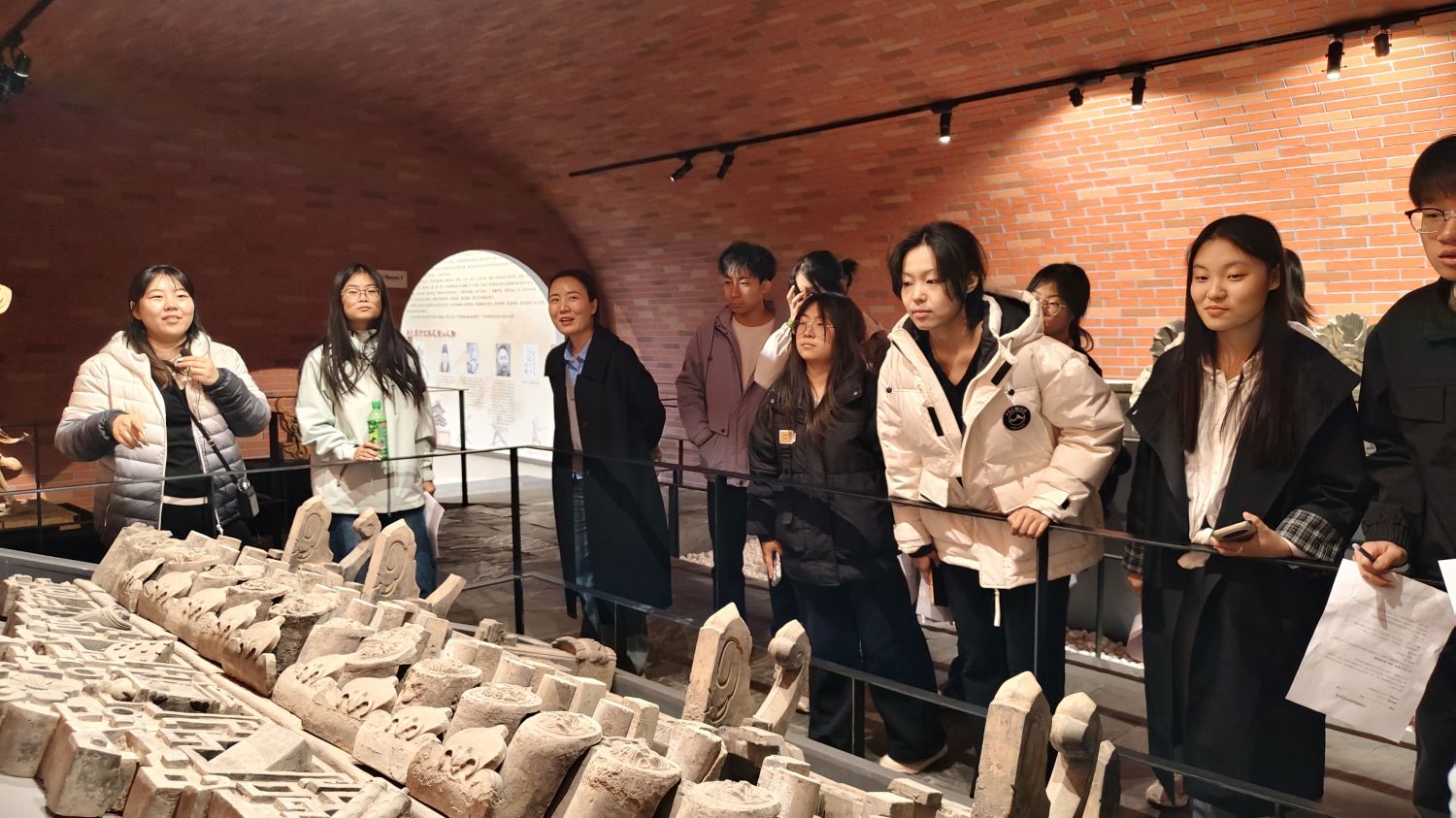 本次研学特邀艺术传媒学院阴梓老师进行现场教学。阴老师从非遗博物馆的六大展馆讲起,深入浅出地剖析了数件馆藏瑰宝的历史价值、艺术特色与文化内涵。她生动地讲述了文物背后的故事与收藏历程,使同学们不仅“知其然”,更“知其所以然”,深刻体会到一所大学博物馆在文化传承、美育涵养方面的社会责任与使命担当。
