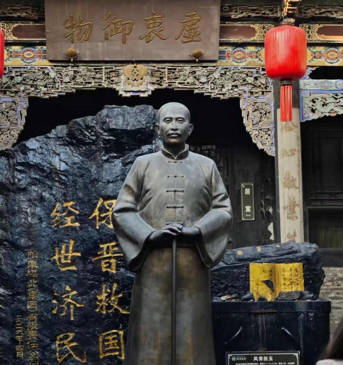 在渠本翘故居,一座四吨重的无烟煤雕与铜像静静讲述着他“保晋救国”的壮举。同学们通过文物与展板,系统梳理了渠本翘在实业救国、教育兴邦、文化传承三方面的卓越贡献。张老师强调,渠本翘既是实业救国的先行者,更是晋商精神的践行者。他身上所体现的“天下兴亡,匹夫有责”的担当精神,至今仍具有深刻的时代价值。