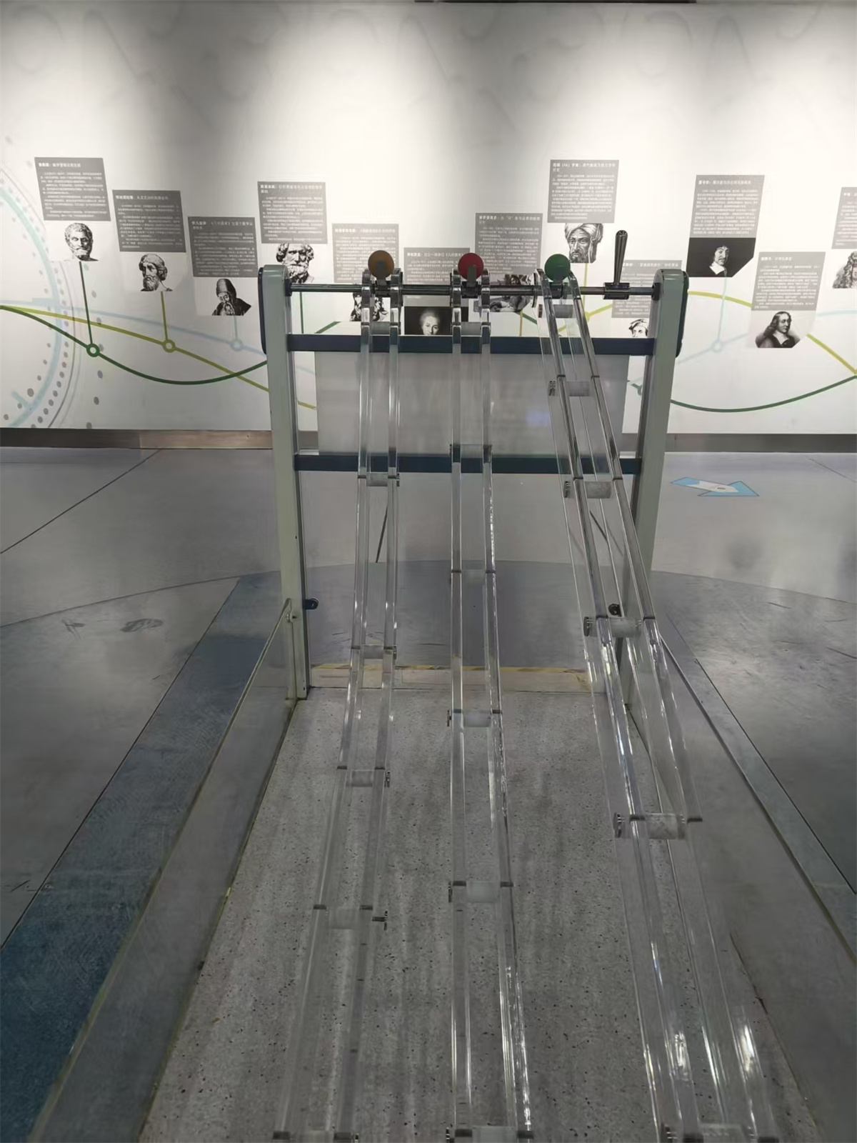 “为什么曲线轨道上的小球反而先到达终点?”在最速降线展品前,武姝廷老师引导学生观察现象、思考本质。通过亲手操作抛物线计算器、观察高尔顿板中小球的分布规律,学生们对变分法、概率统计等抽象概念有了直观理解。在“数学之美”与“数学之趣”展区,抽象的数学原理化身为灵动的互动体验。莫比乌斯环前,同学们用手指验证着“永无止境”的单面奇迹;最速降线的轨道上,下坠的小球以最直观的方式,颠覆了“直线最快”的朴素直觉;高尔顿板中,无数小球的随机落点,竟勾勒出完美的正态曲线,让“概率”一词从未如此形象。